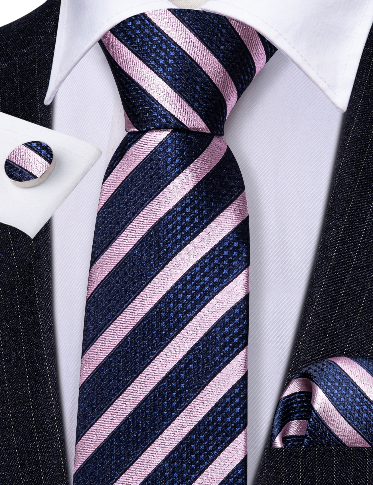 Модные розовые синие полосатые мужские шелковые броши для галстука, мужские носовые платки, запонки, наборы, мужские подарочные Барри. Ван дизайнерские
