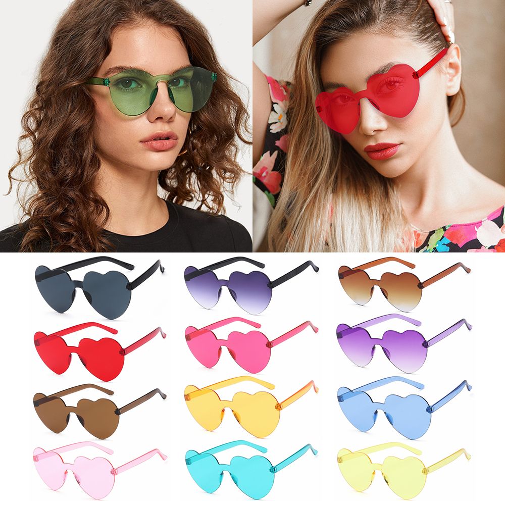 Модные солнцезащитные очки без оправы в форме сердца, женские солнцезащитные очки с УФ-защитой, прозрачные очки карамельных цветов, очки для вечерние