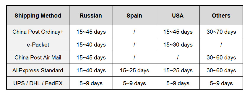 Для 80% стран, когда ваш заказ превышает 120 долларов США, мы отправляем его черезБыстрый экспрессНапример DHL
