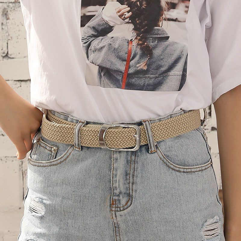 Модный Эластичный широкий ремень с квадратной металлической пряжкой тканый эластичный ремень для работы студентов Повседневный Пояс для брюк под платье джинсы