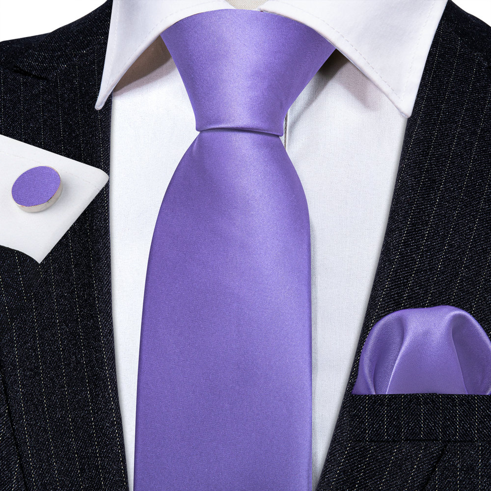 Модный Фиолетовый однотонный Шелковый мужской галстук набор для свадьбы Галстук платок Запонки Барри. Булавка для галстука Wang