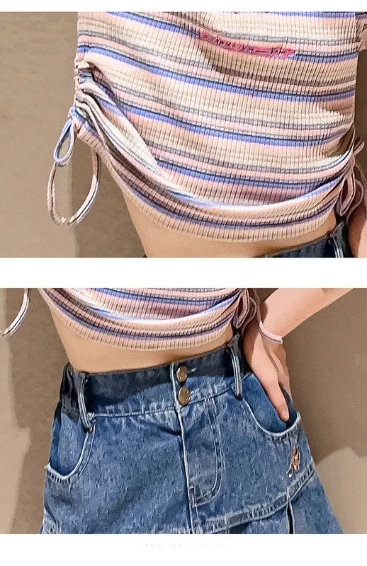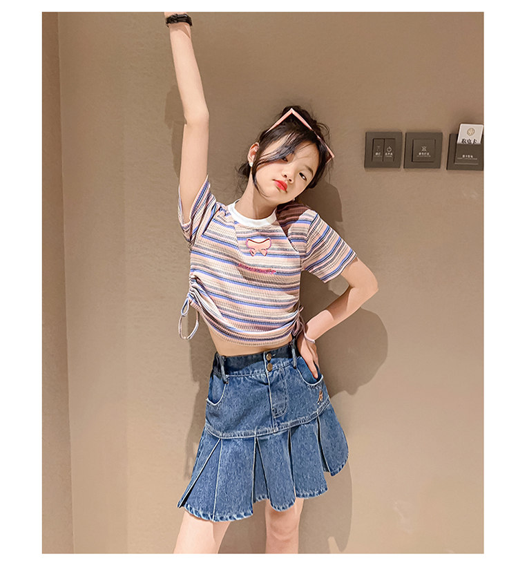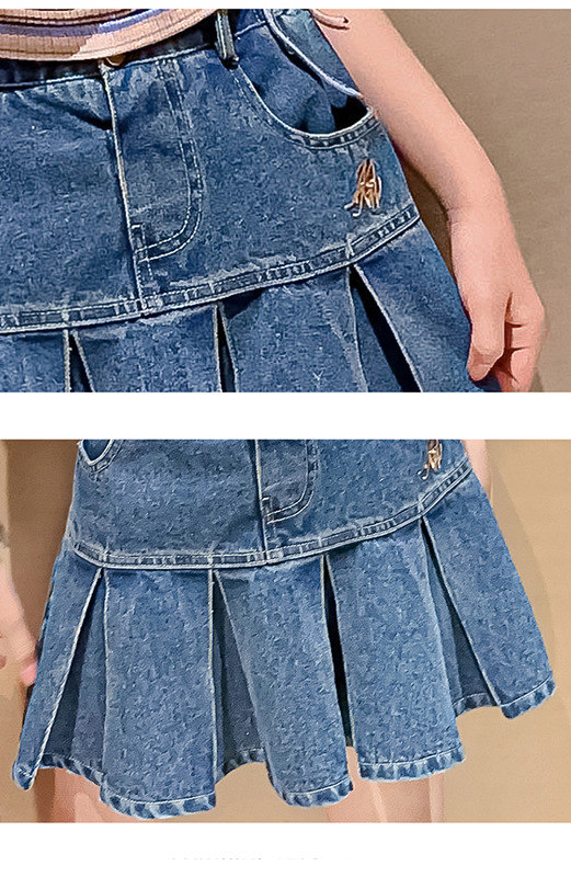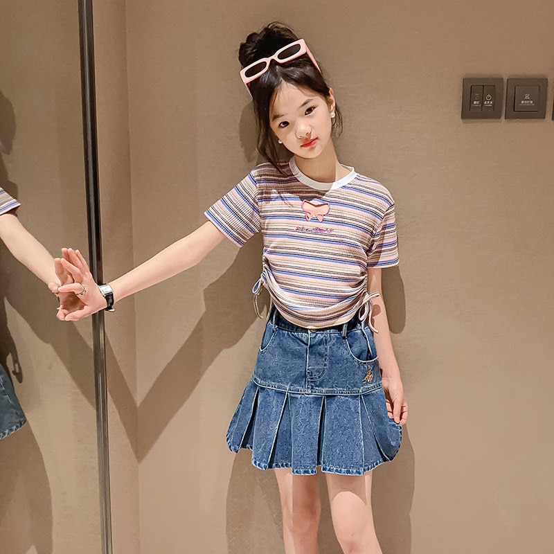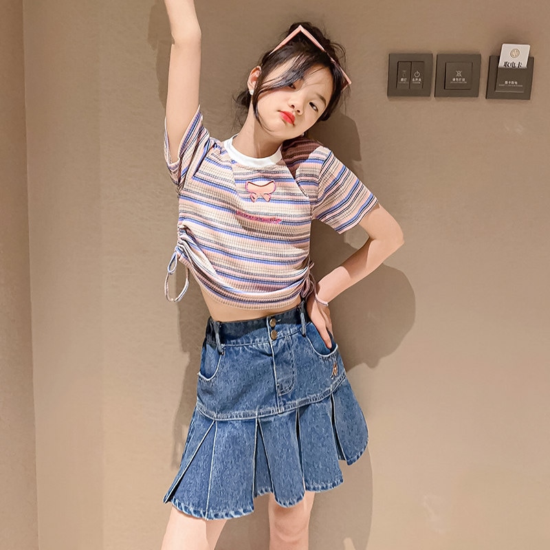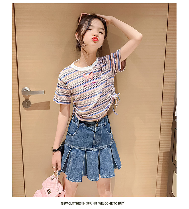 Модный комплект одежды для девочек, повседневный костюм, милый топ + джинсовая юбка из 2 предметов, летняя крутая Одежда для девочек 6, 8, 11, 13, 14 лет