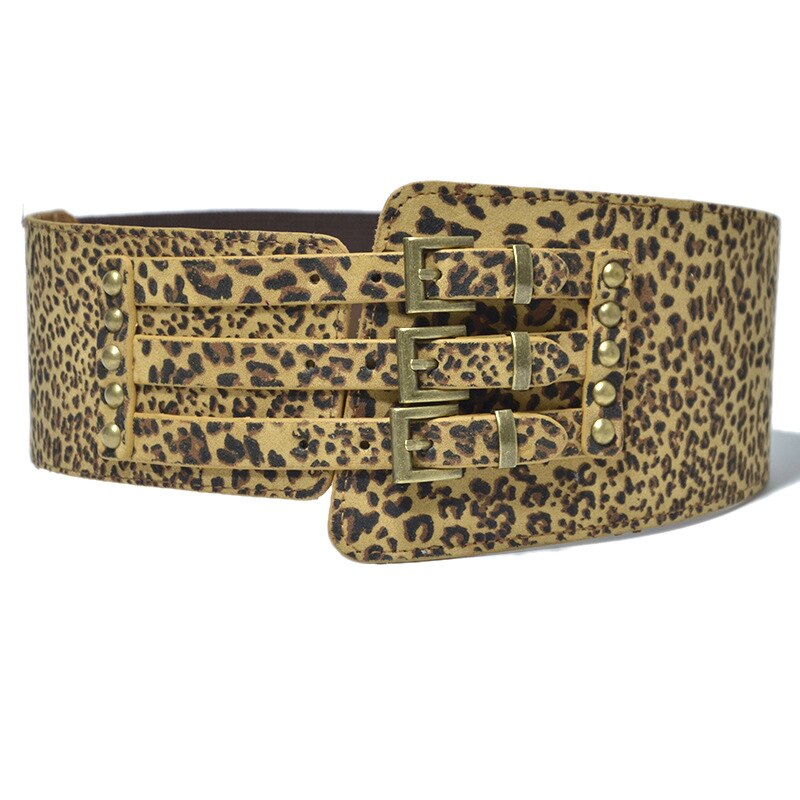 Модный Леопардовый женский эластичный пояс с металлической пряжкой с заклепками