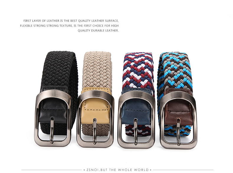 Модный мужской пояс, плетеный эластичный пояс из сплава без перфорации, с пряжкой-иглой, эластичный женский холщовый пояс
