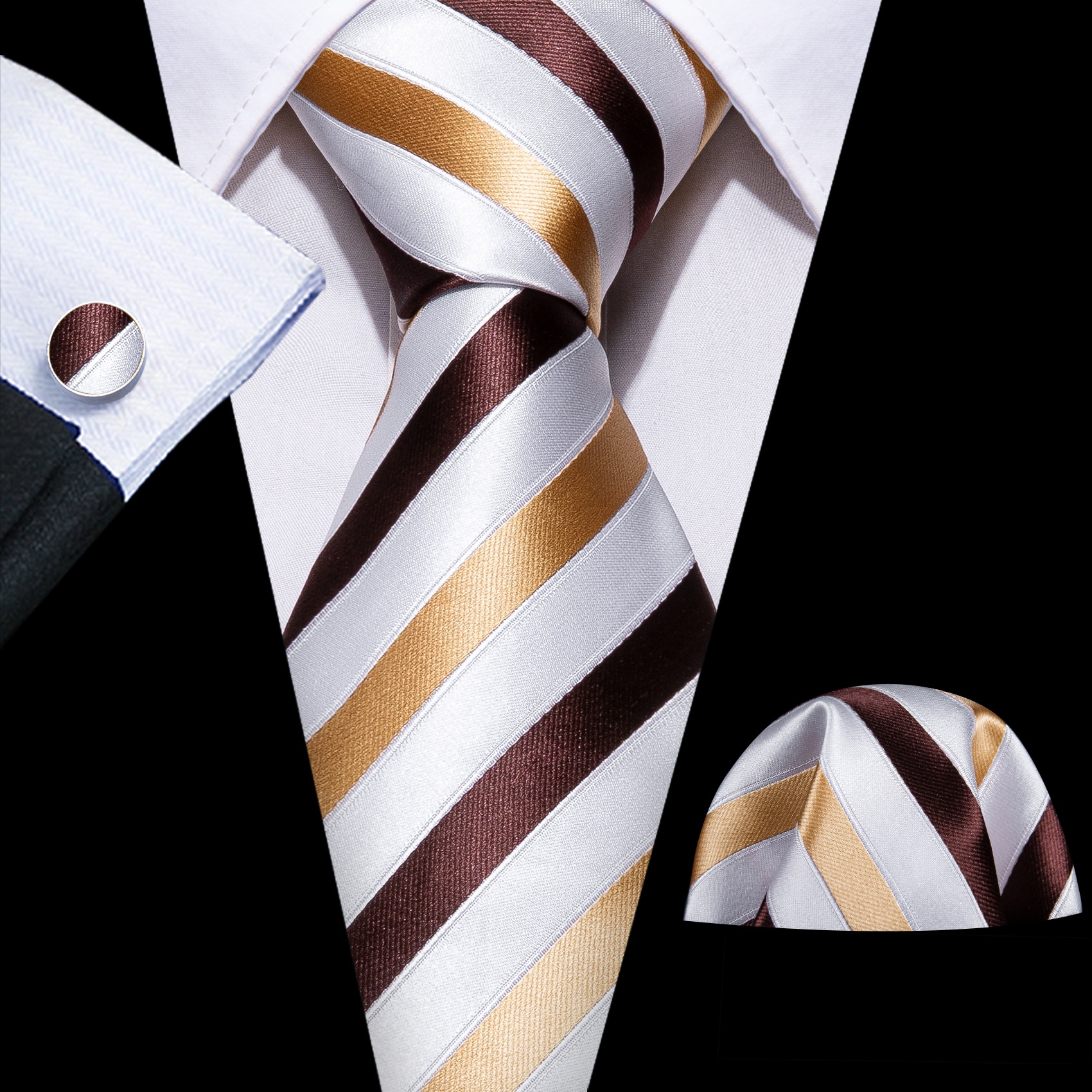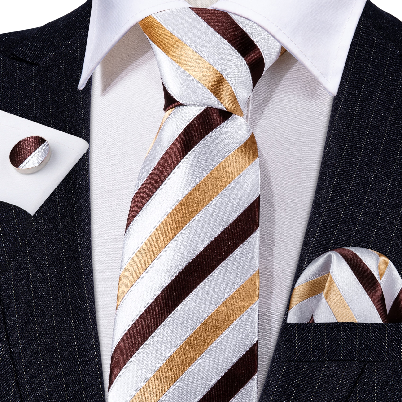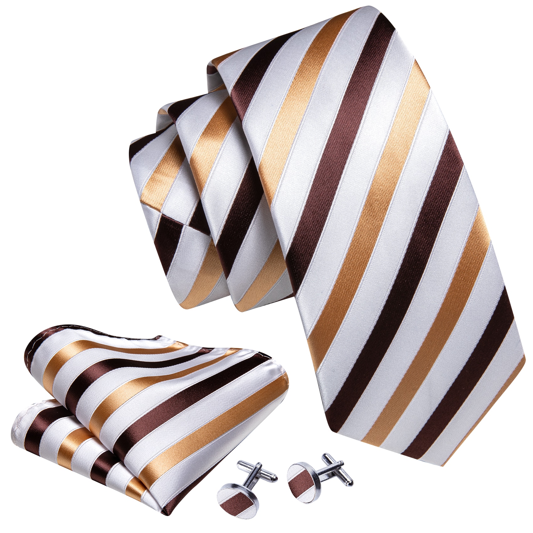 Модный Мужской Шелковый галстук в полоску цвета хаки Модные Броши Мужской галстук Носовой платок Запонки Наборы мужских подарков Barry.Wang Designer