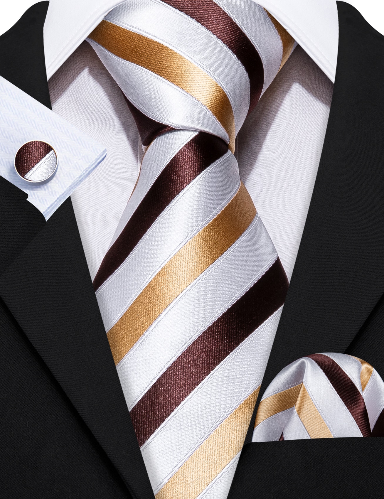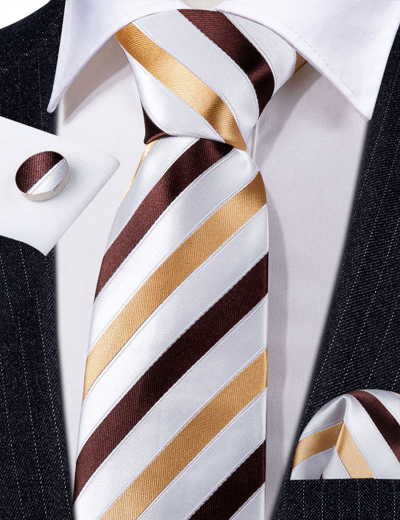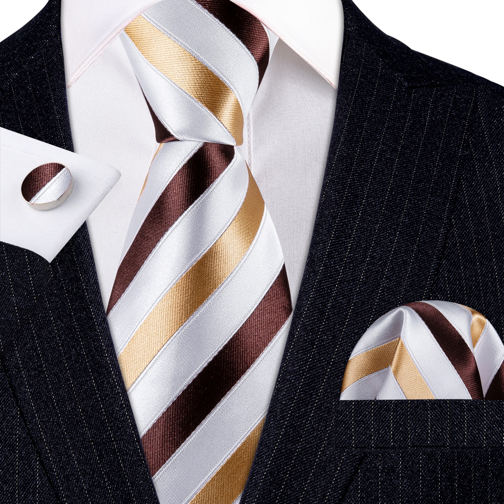 Модный Мужской Шелковый галстук в полоску цвета хаки Модные Броши Мужской галстук Носовой платок Запонки Наборы мужских подарков Barry.Wang Designer