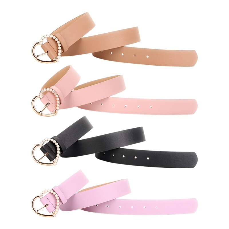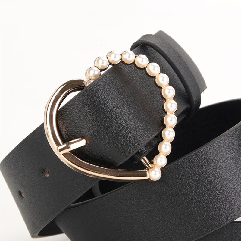 Модный популярный пояс из искусственной кожи для девушек, пояс с жемчужным сердцем и пряжкой