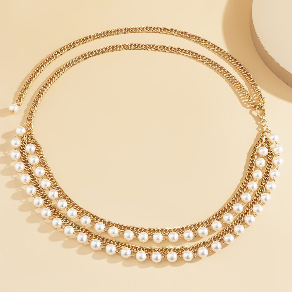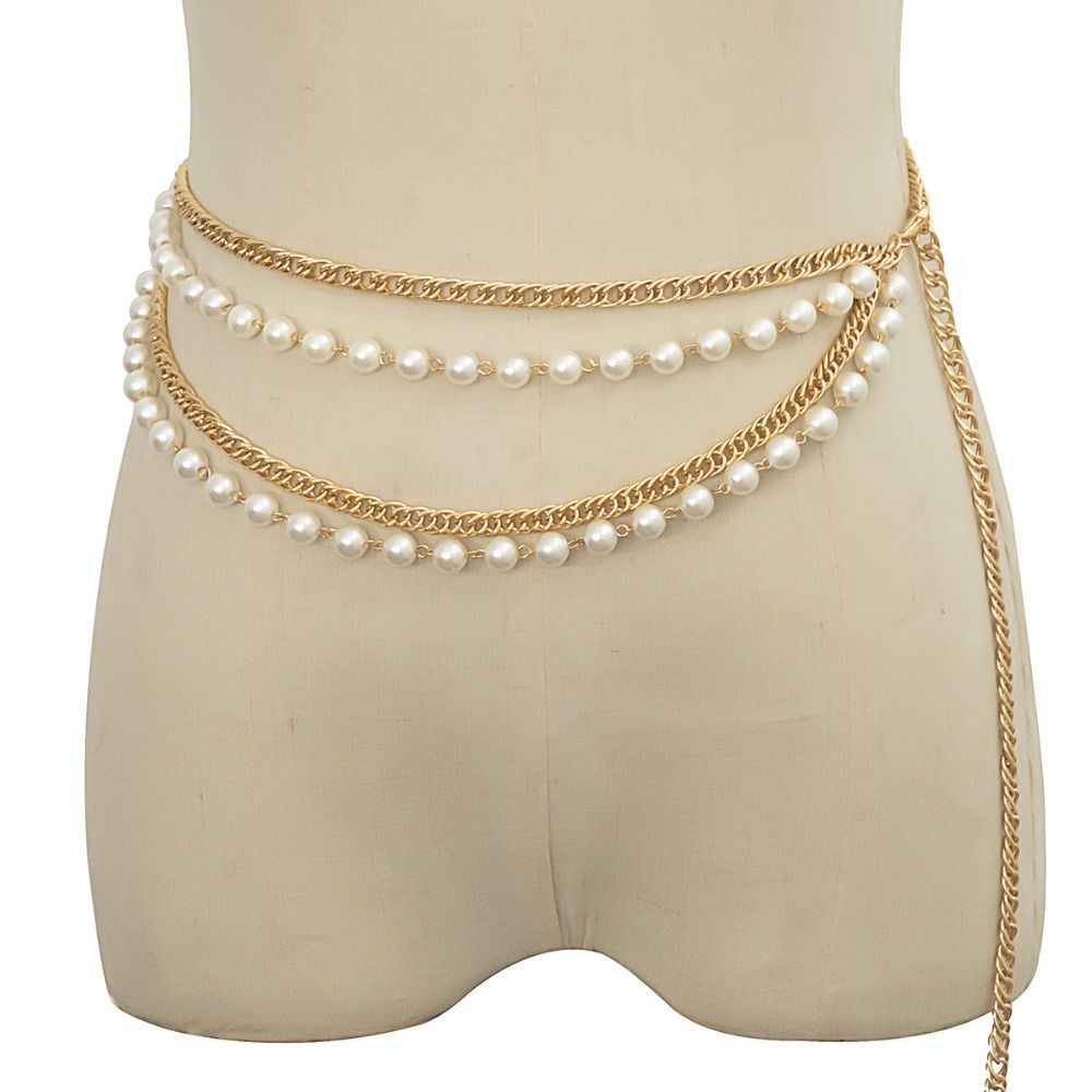 Модный трендовый пояс для тела, элегантный пояс с металлической цепочкой, пояс с жемчужинами, пояс для похудения