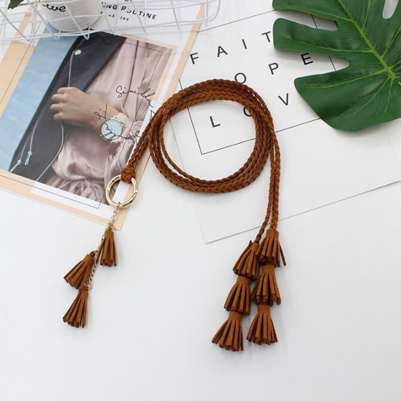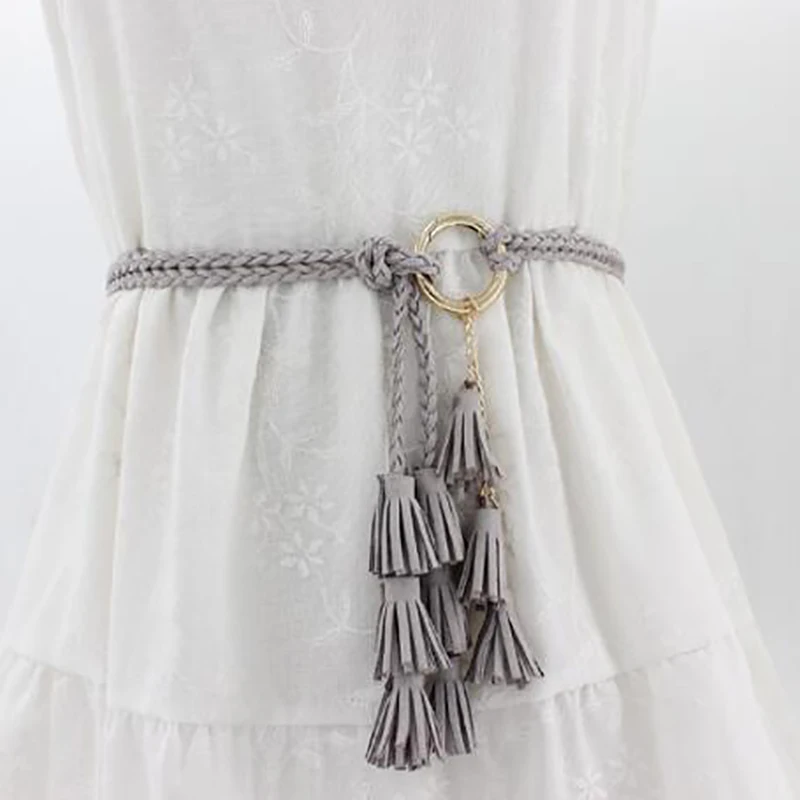 Модный женский однотонный плетеный пояс с кисточками 2020 Новый Бохо для девочек с тонкой талией вязаные ремни для поясов аксессуары