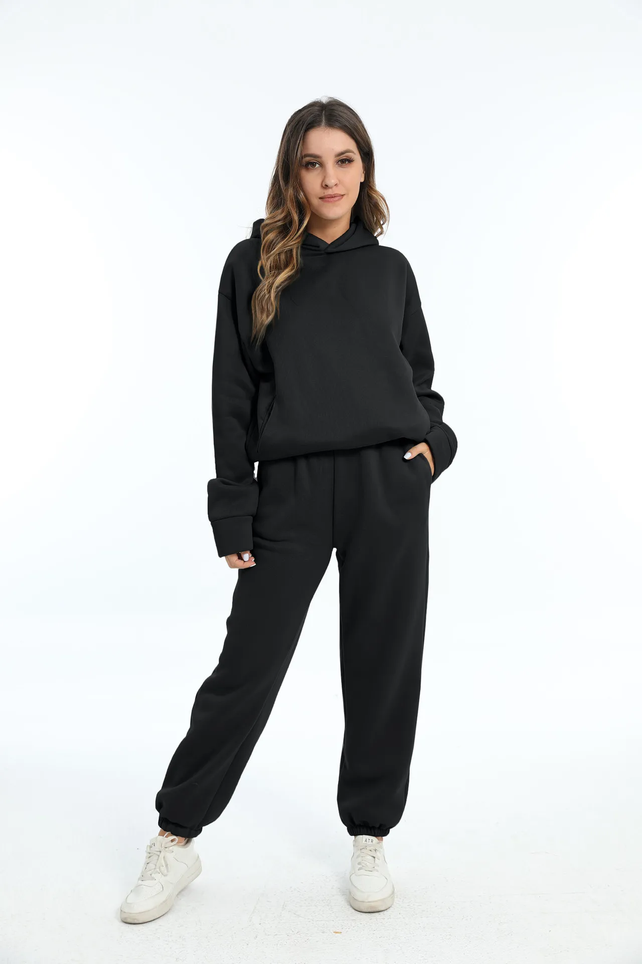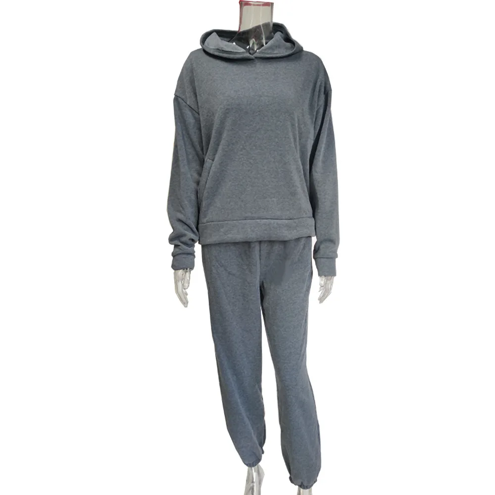 Модный женский спортивный костюм из двух предметов, новый осенний наряд, элегантные женские комплекты 2022, повседневный Однотонный женский комплект с капюшоном и длинным рукавом для бега