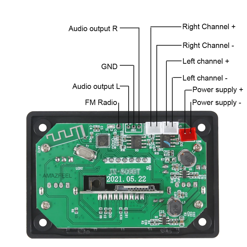 Модуль MP3-плеера, Bluetooth-совместимая плата декодера 5,0, 12 В, 50 Вт