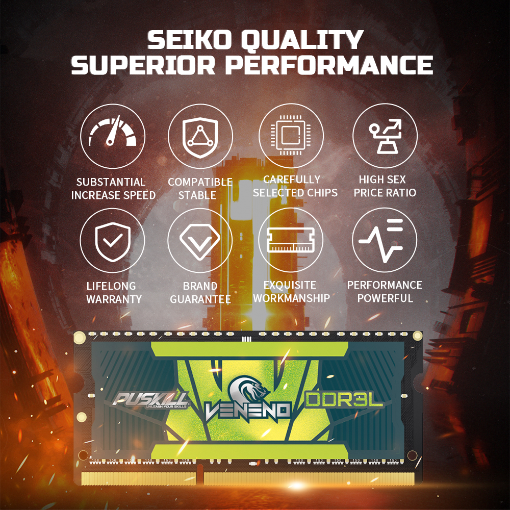 • Продукт: Память для ноутбука Puskill Killblade 32/16/8/4 ГБ Ddr4 Ddr3L 3200/2666/1600/1333 МГц Cl22/Cl19/Cl17/Cl11/Cl9