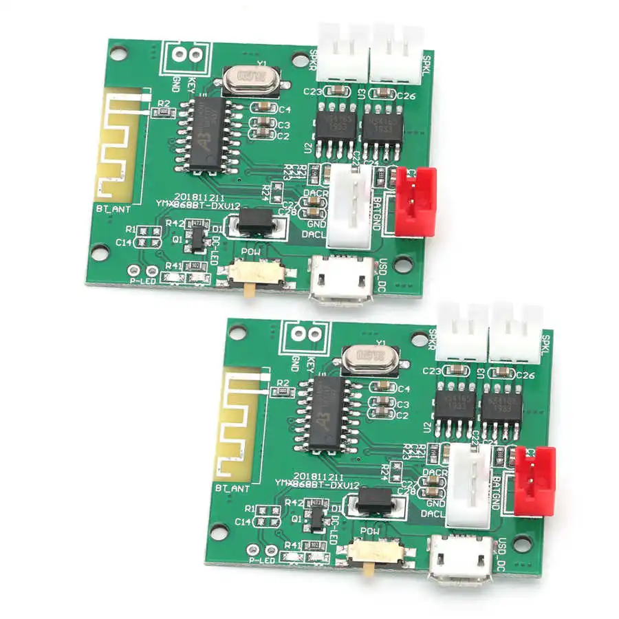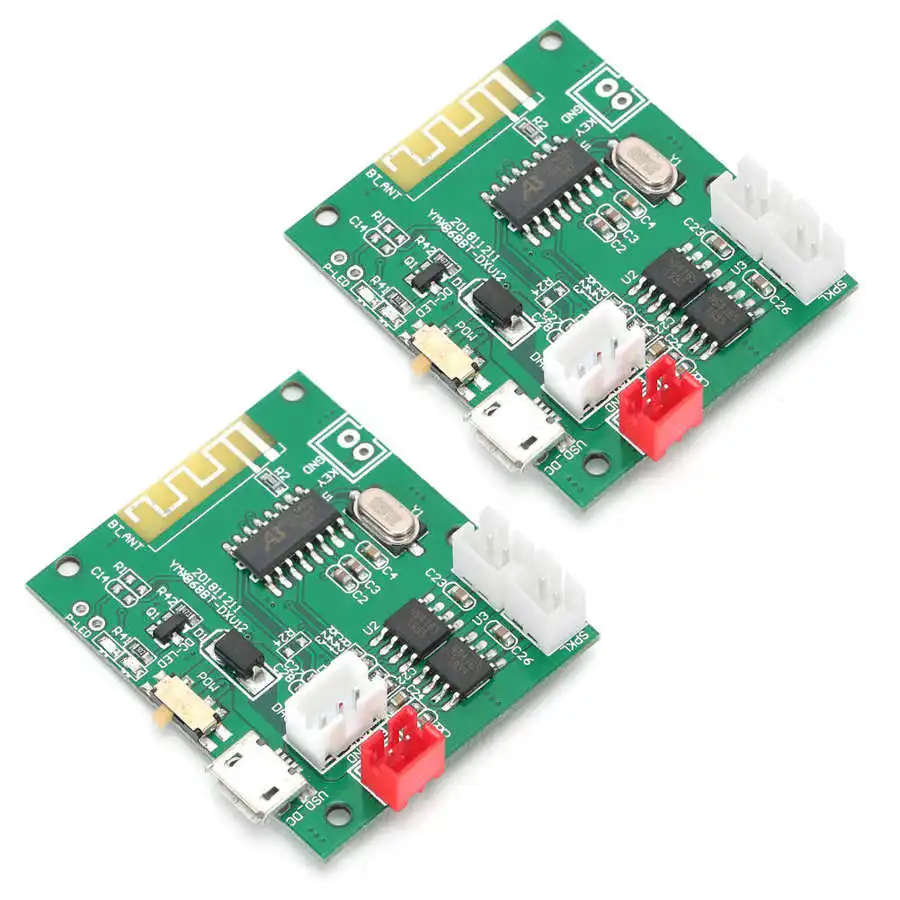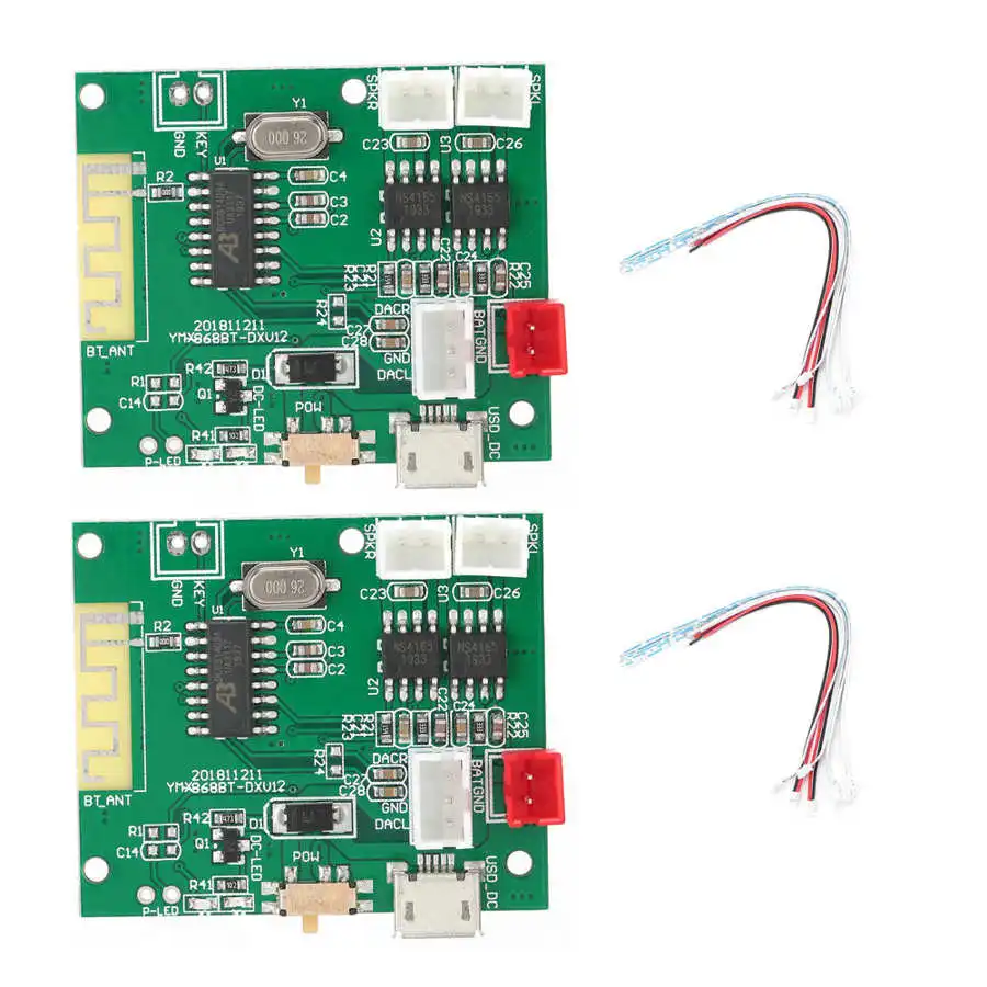 2) Рабочее напряжение литиевой батареи 3,7 В или регулируемое питание постоянного тока 4,5 ‑ 5 В постоянного тока, ток (600 ‑ 700 мА при подключении к одному динамику; 1,5 ‑ 2 А при подключении к двум динамикам. Динамик с питанием от литиевой батареи 4 Ом 3 Вт + 3 Вт, Регулируемый источник питания 5 В/2 А, динамик 4 Ом 5 Вт + 5 Вт. Если тока недостаточно, будет пропуск или нестабильность, материнская плата всегда будет перезагружаться или качество звука/сломанный звук/искажения и т. Д. (Если есть эта проблема, пожалуйста, проверьте свой источник питания), напряжение не может быть выше 5 В, иначе это повредит основной чип, ИС усилителя мощности и связанные с ними компоненты, обратите внимание