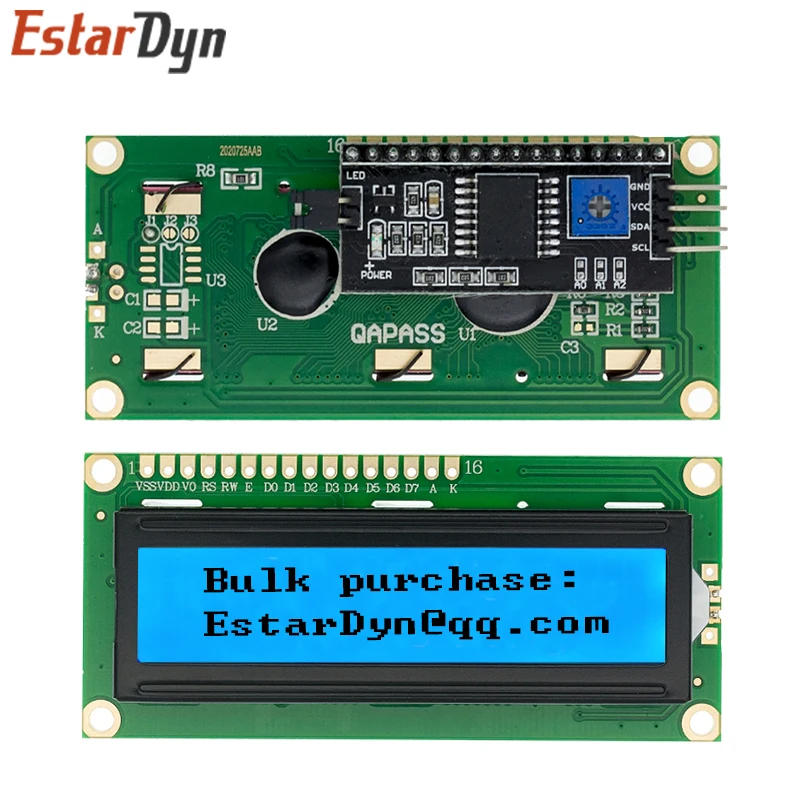 • Оригинальный 1602 экран требует 7 портов IO для подключения, и этот модуль может сохранить 5 портов IO