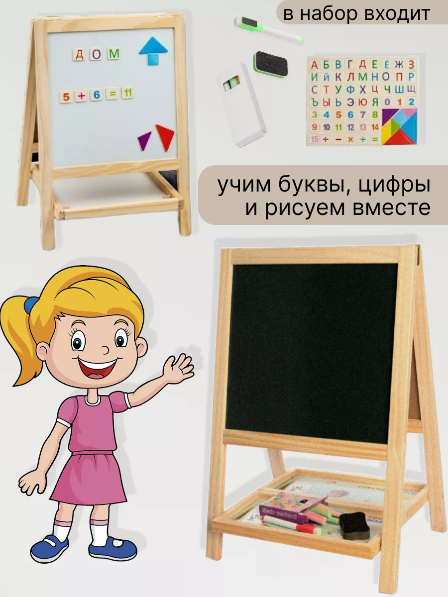Комплектация Доска для рисования-1шт; магнитный алфавит-1шт; набор мелков и губка-1шт; маркер-1шт