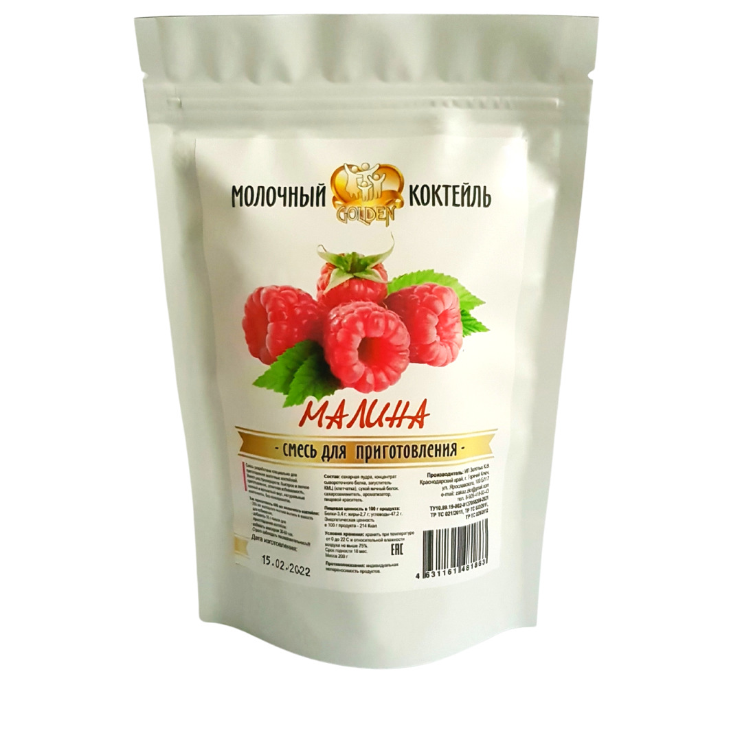 Молочный коктейль Golden, вкус МАЛИНА, объем 200гр, пакет