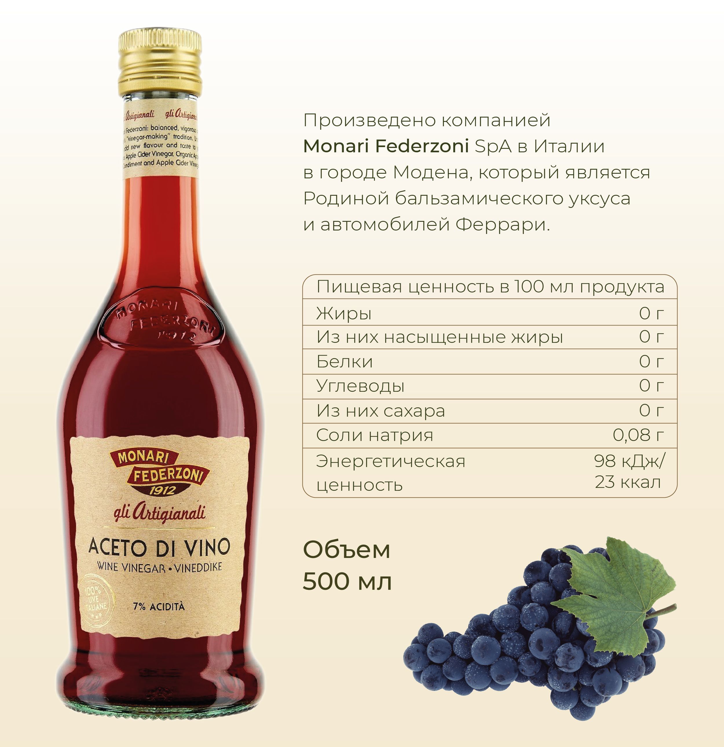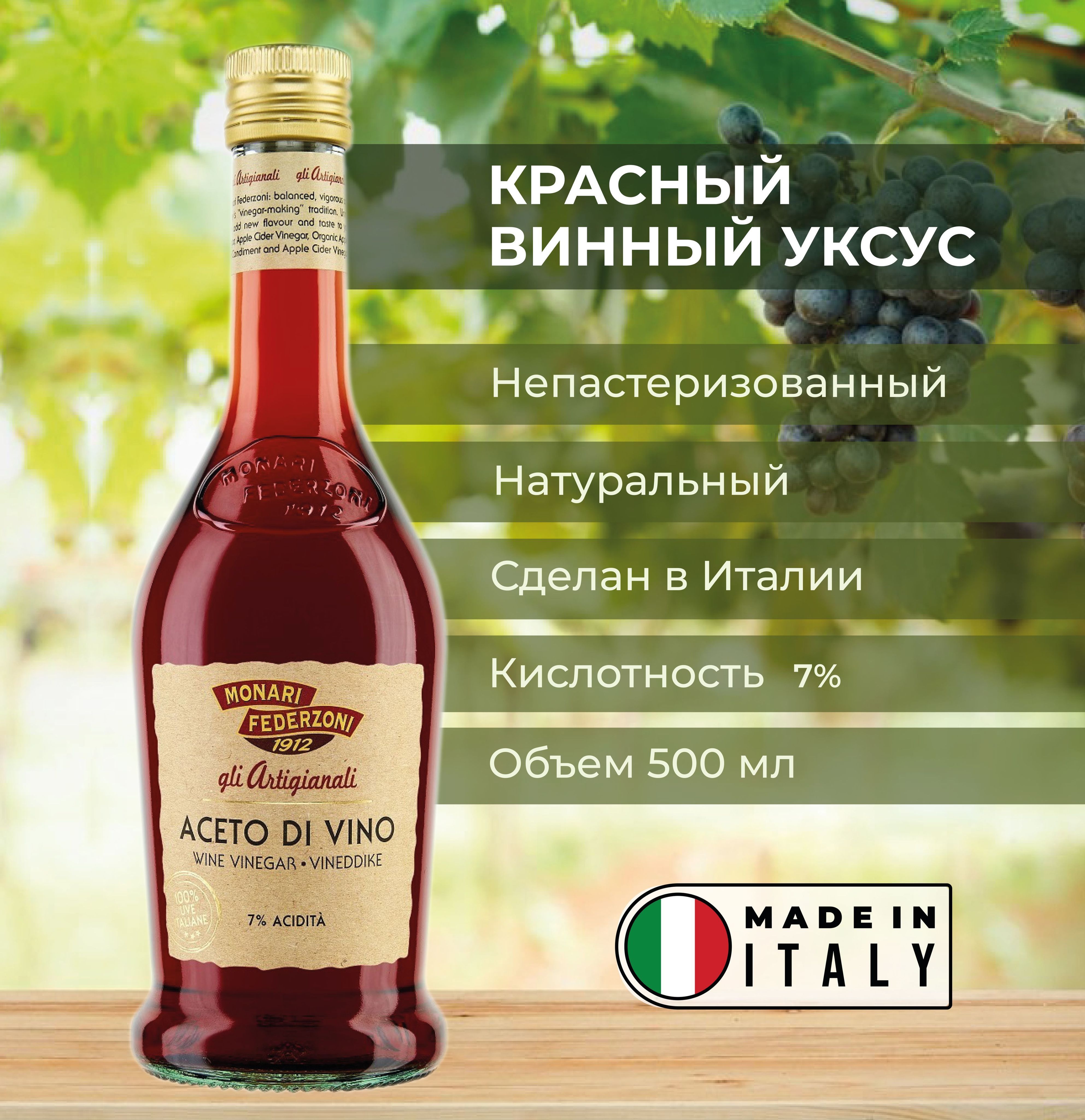 Monari Federzoni КРАСНЫЙ ВИННЫЙ УКСУС 500 мл. Кислотность 7%.Стекло