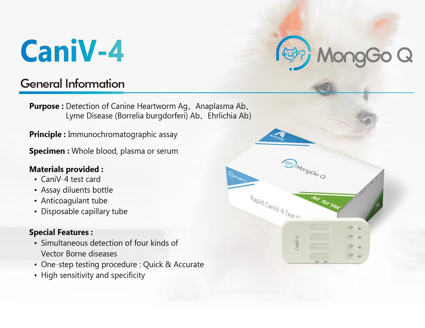 MongGo Q 10-упакованный ветеринарный быстрый тест анаплазма сердцебиения Erlichia Lyme Canies, тестовый набор для профилактики заболеваний собак, CHW/ANA/LYM/EHR