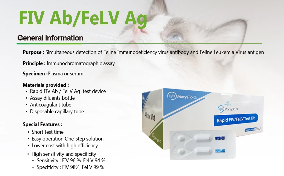 • Регулярный тест на здоровье кошек-устраните потенциальные опасности FIV/FeLV, улучшите качество жизни кошек, сохраняйте здоровье кошки дома самостоятельно.
