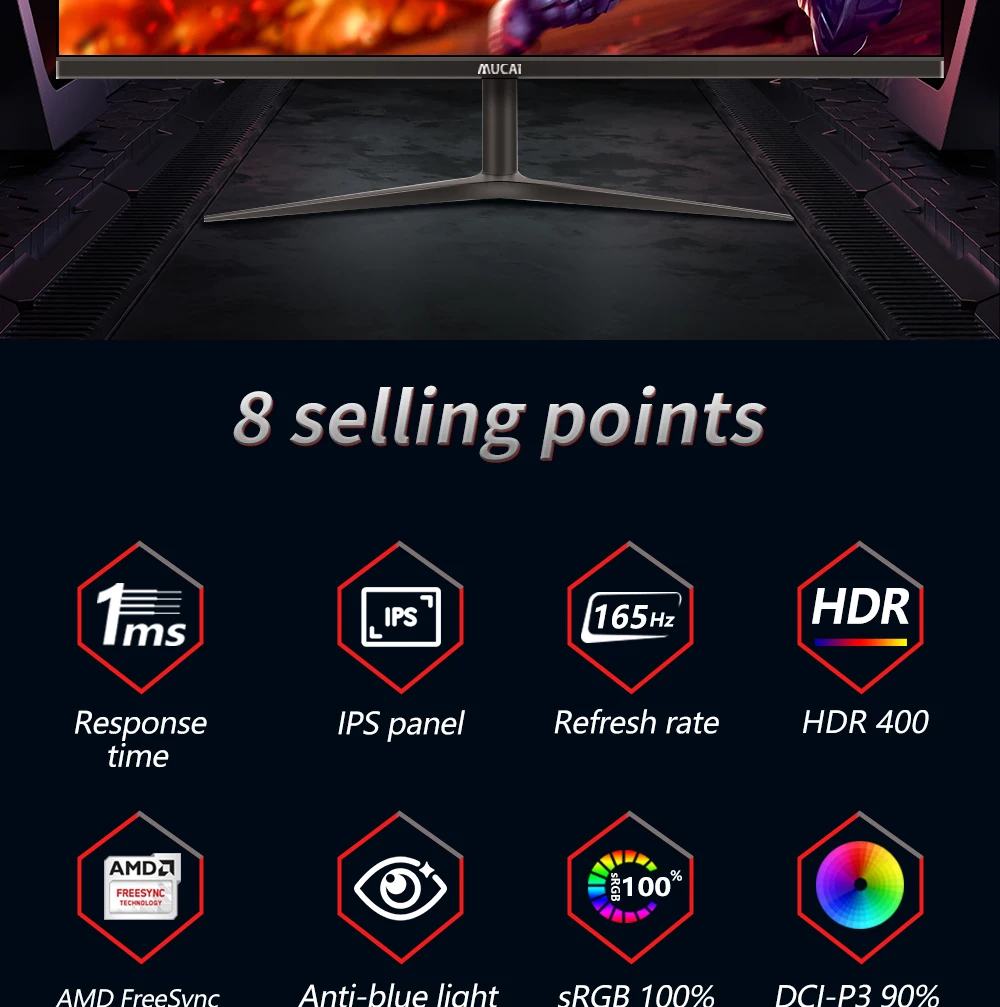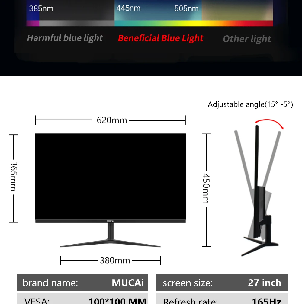 Монитор MUCAI диагональю 27 дюймов, 144 Гц, ЖК-дисплей HD 27 дюймов, 165 Гц, IPS экран для настольного игрового компьютера, плоская панель, отклик 1920*1080, 1K DP