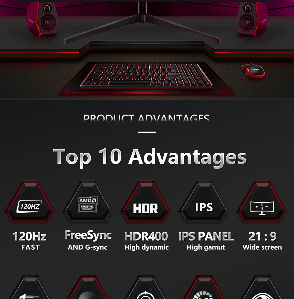 Монитор MUCAI диагональю 29 дюймов, 120 Гц, WFHD, широкий дисплей, разрешение 21:9, IPS, экран для настольного компьютера, без изогнутых элементов, экран для геймера DP/2560*1080