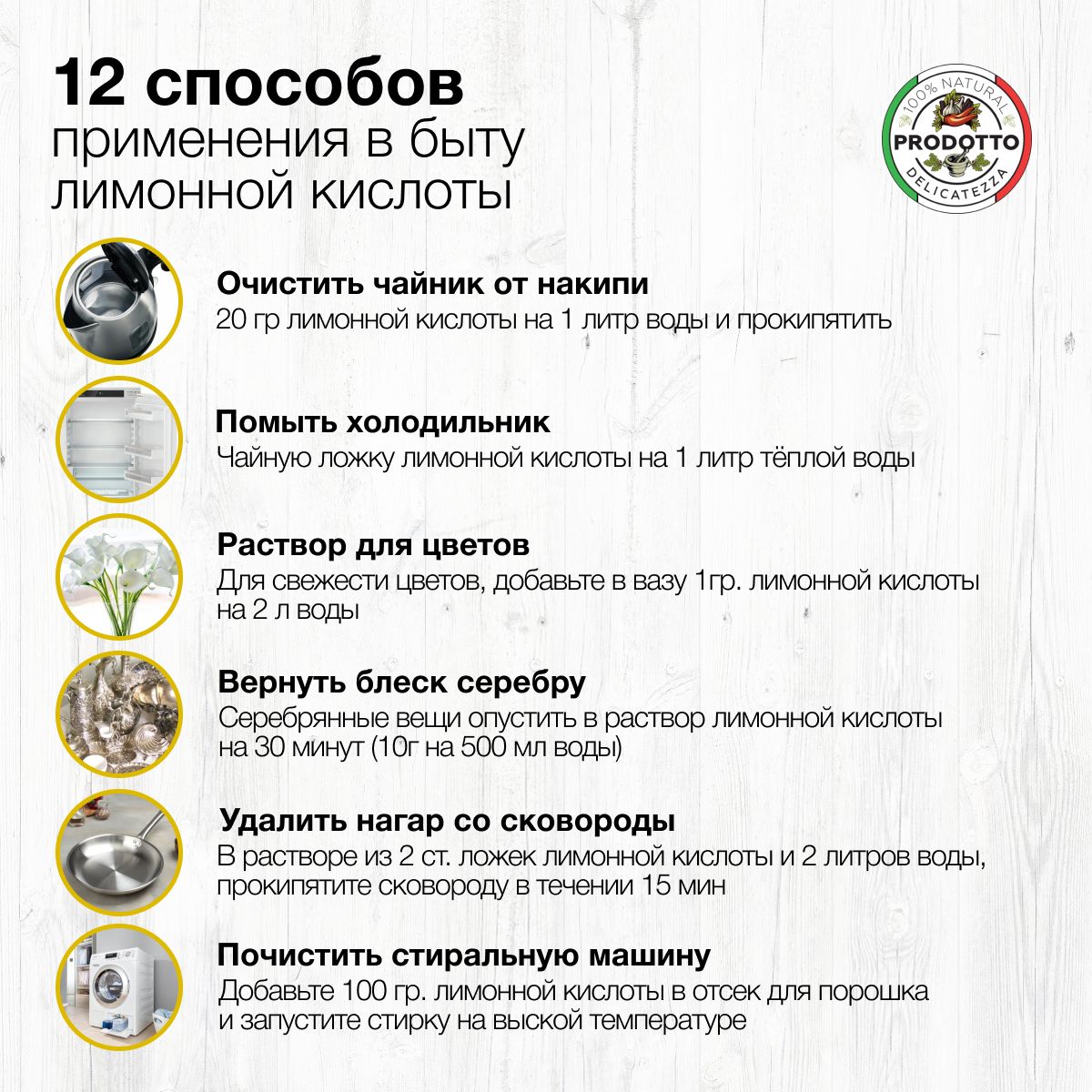 Поэтому лимонную кислоту нужно употреблять с большой осторожностью (контролировать дозу). Также концентрированный раствор может вызвать ожоги кожи, поэтому работать с таким веществом нужно в перчатках смотровых или перчатках нитриловых и защитной маске, так как при вдыхании кислоты в сухом виде может вызвать раздражение дыхательных путей.