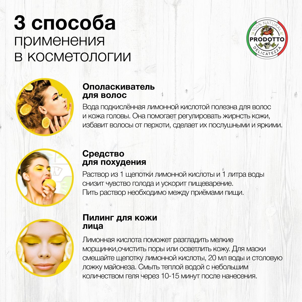 Поэтому лимонную кислоту нужно употреблять с большой осторожностью (контролировать дозу). Также концентрированный раствор может вызвать ожоги кожи, поэтому работать с таким веществом нужно в перчатках смотровых или перчатках нитриловых и защитной маске, так как при вдыхании кислоты в сухом виде может вызвать раздражение дыхательных путей.