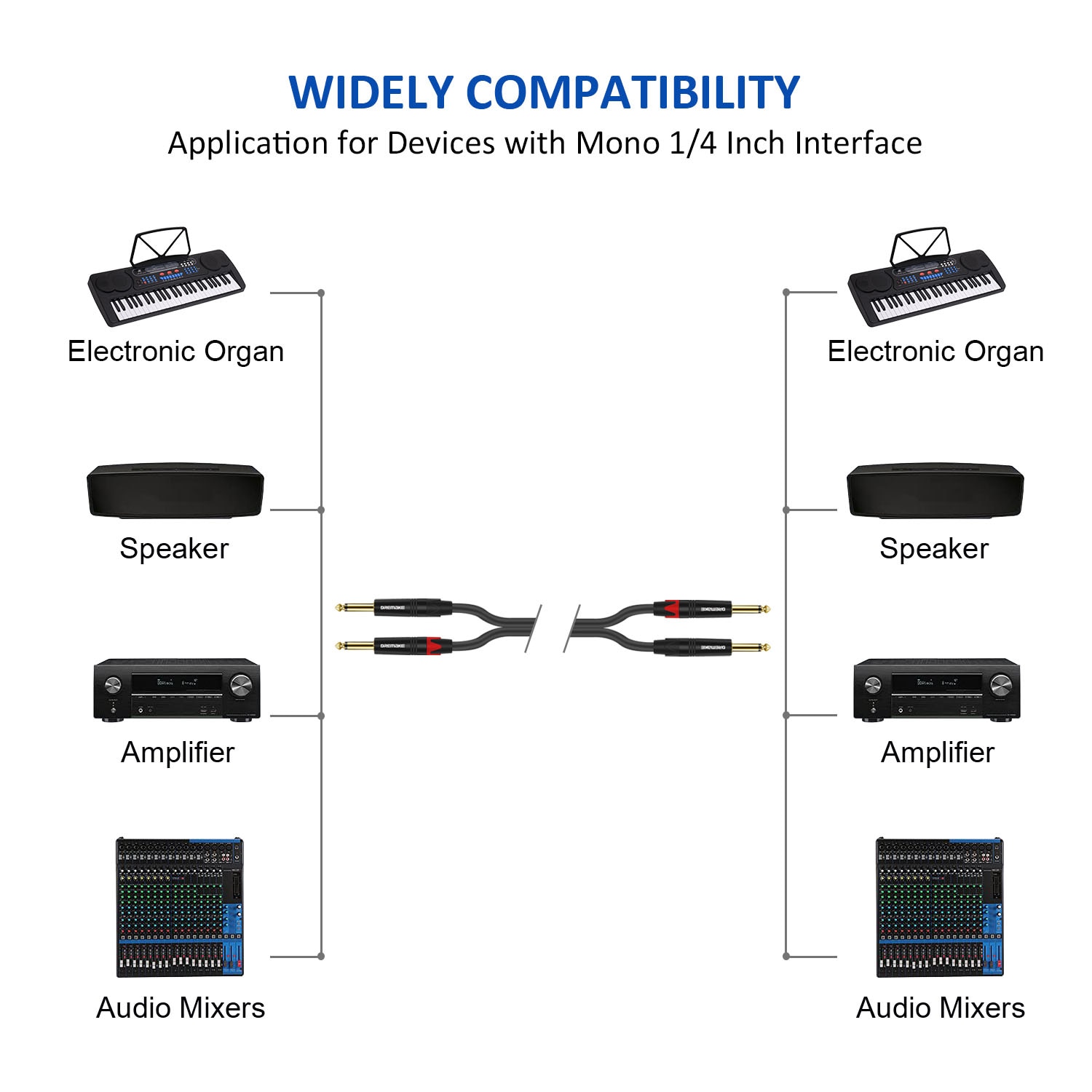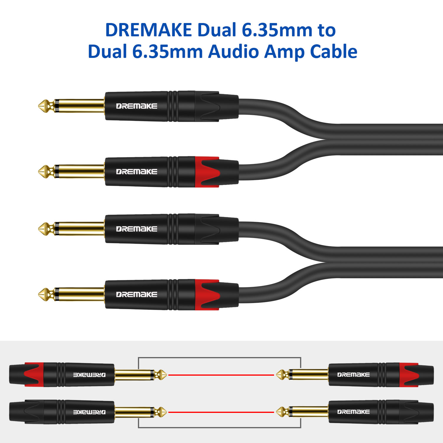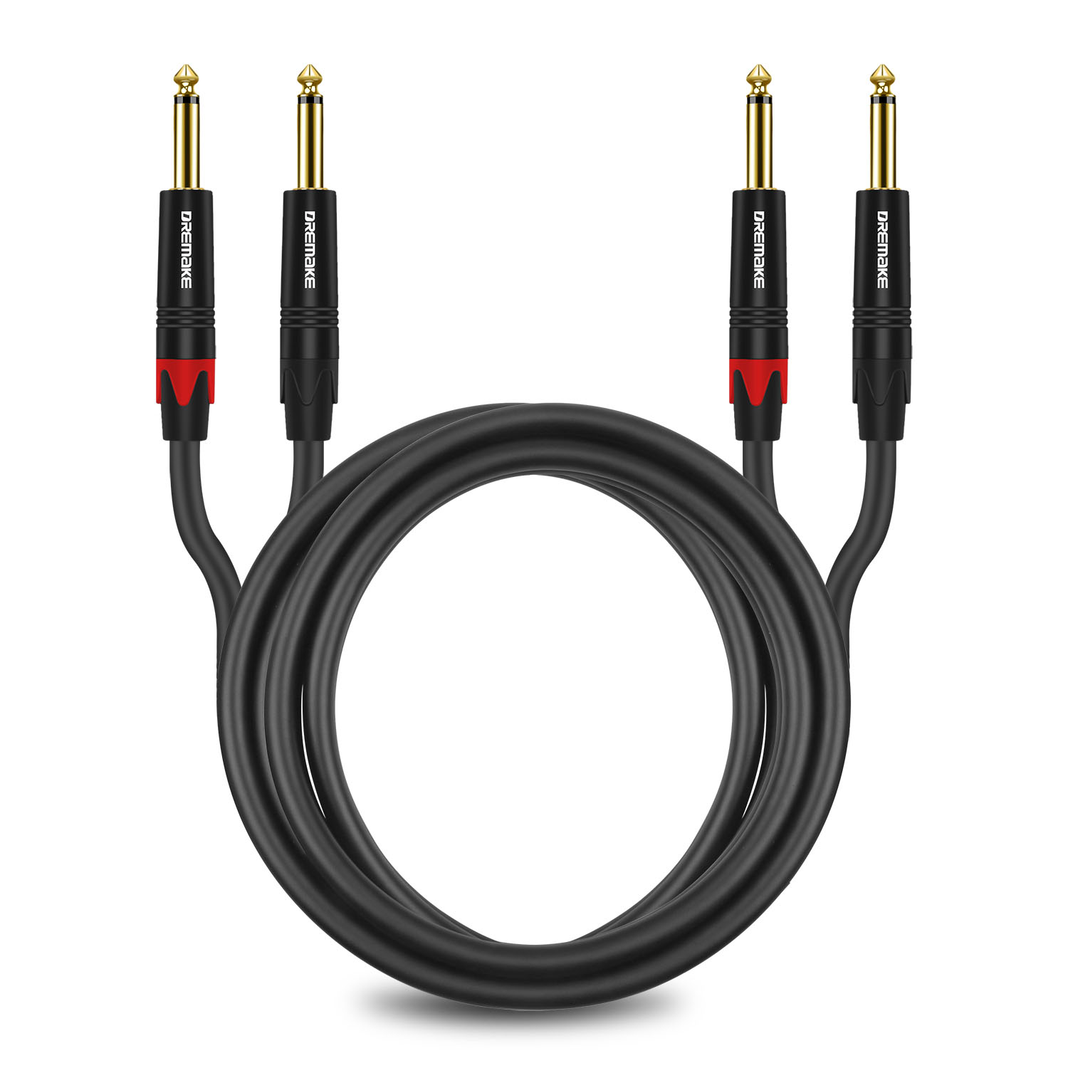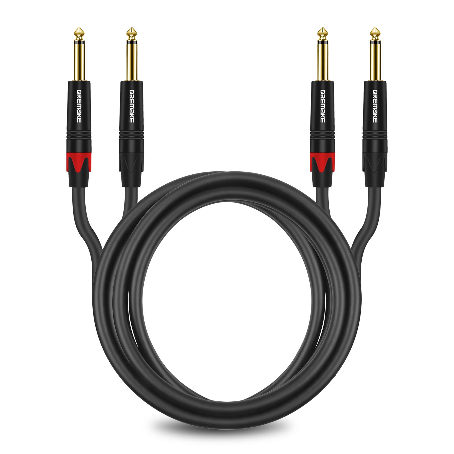 ДремакеАудиокабель 1/4 дюйма, двойной штекер TS 6,35 мм для Двойной мужчина ТС 6,35 ммСоединительный аудиокабель, 2x6,35 мм 1/4 дюйма, штекер, стерео аудио адаптер, разветвитель, шнур для динамика, усилителя, гитары и басов