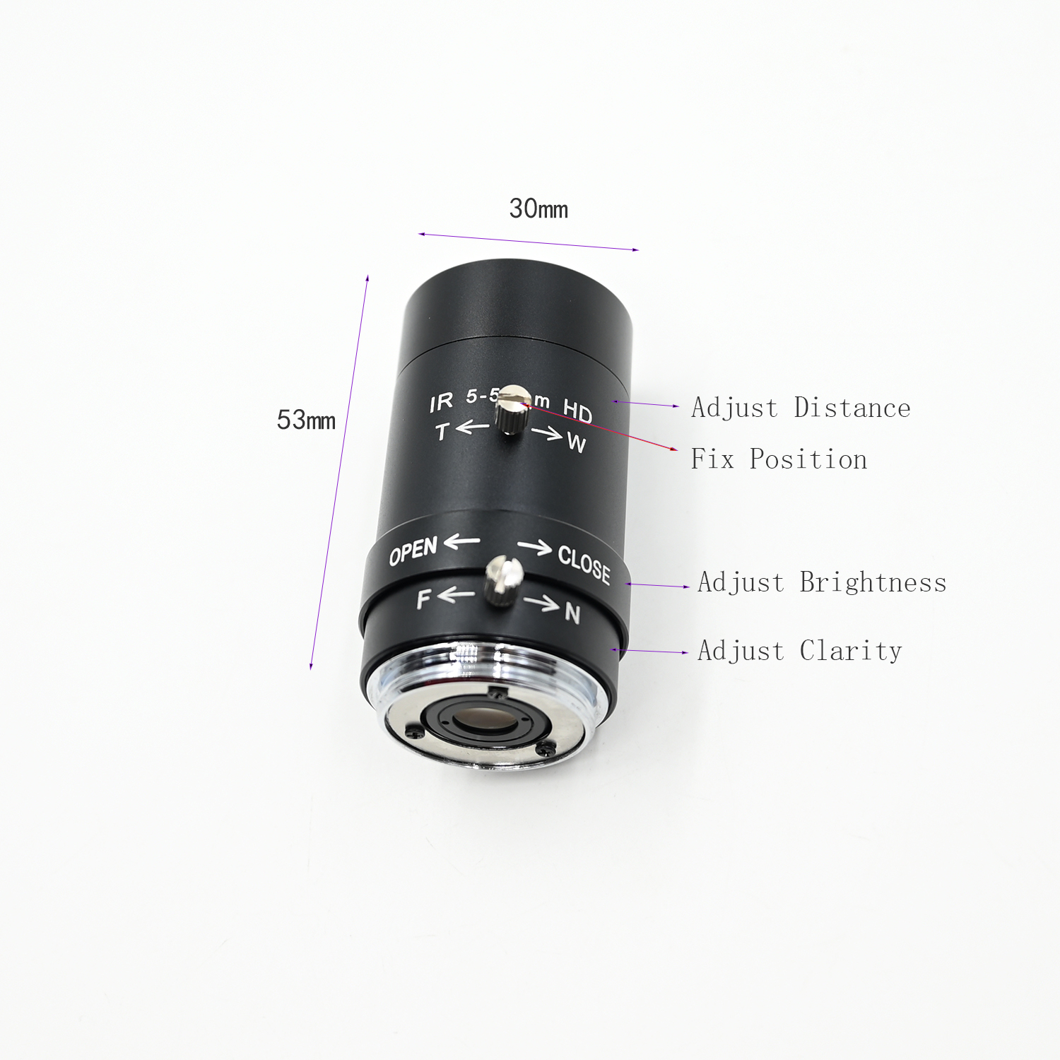 Угол:Высококачественный объектив HD 2,8-12 мм и 5-50 мм с ручным варифокальным креплением CS, объектив CS с фиксированным фокусом 4/6/8/12/16 мм, предоставляет вам сверхчеткие детали изображения, отражающие более реалистичную среду.
