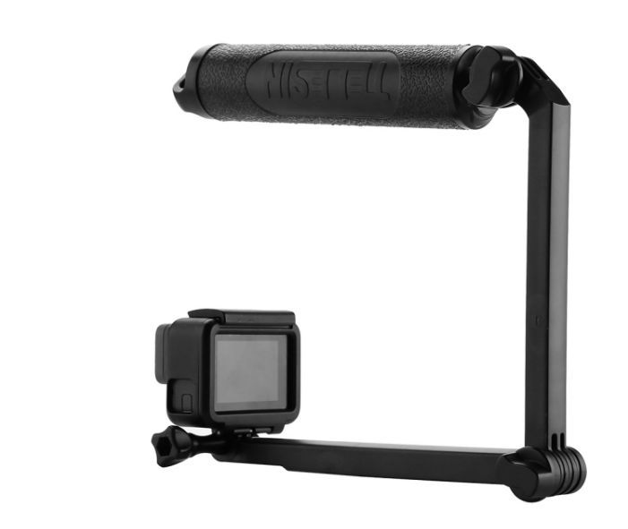 Благодаря полой внутренности ручки обеспечивается плавучесть конструкции - если вы уроните камеру с моноподом в воду, она не утонет. Для достижения нейтральной плавучести и использования монопода в подводной съемке наберите в отсек ручки необходимое количество воды. Отсек герметичен и позволяет хранить в нем небольшие предметы (деньги, ключи). Ручка монопода выполнена из технологичного антискользящего материала для предотвращения падения. Встроенный трёхпозиционный штатив позволяет использовать аксессуар для статичной съемки на ровной поверхности