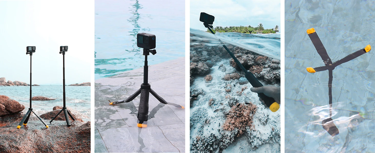 Эта многоцелевая плавающая селфи-палка совместима с GoPro Hero 11 10 9 8 7 6 5 4 3 + 3 2 Fusion, Session, Max, экшн-камерой DJI OSMO, SJCAM, AKASO и большинство экшн-камер.