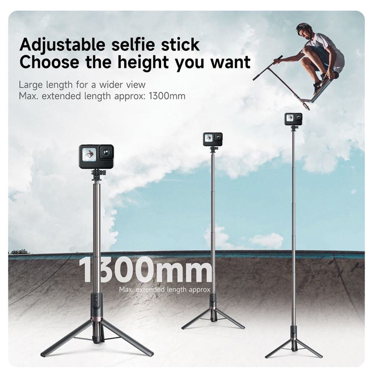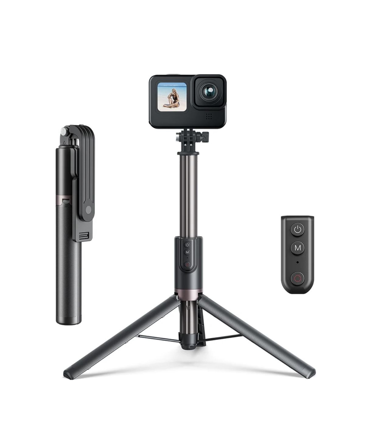 Описание: Монопод штатив 24,5-130см с пультом для GoPro Hero 12, Hero 11, Hero 10, Hero 9, 8 Max и телефонов.