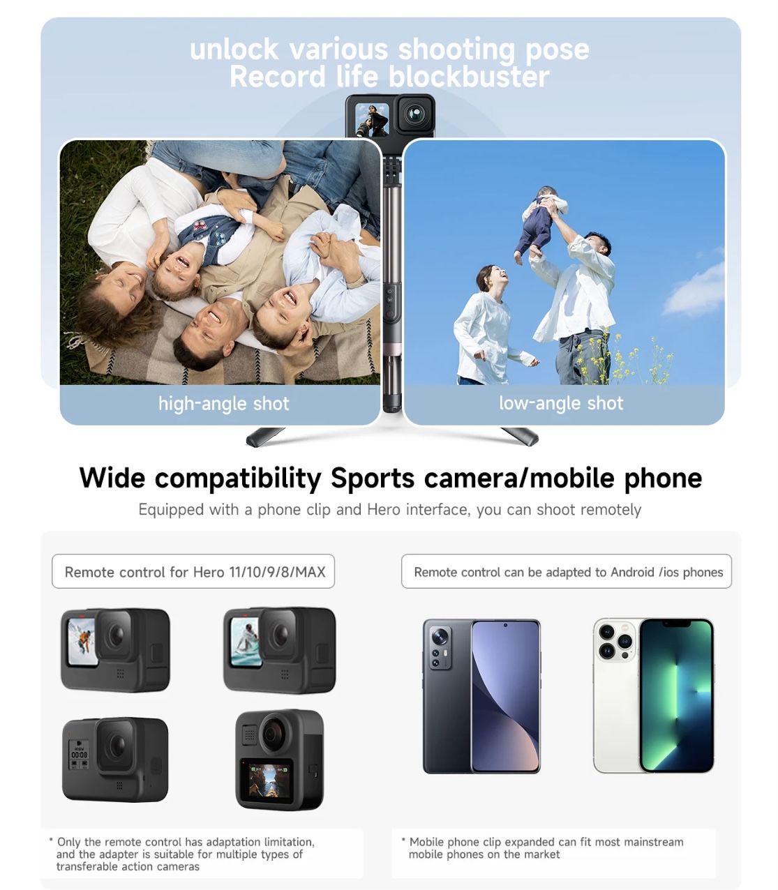 ⁃ Подходит для GoPro Hero 12, Hero 11, Hero 10, Hero 9, 8 Max , андроид, айфон.