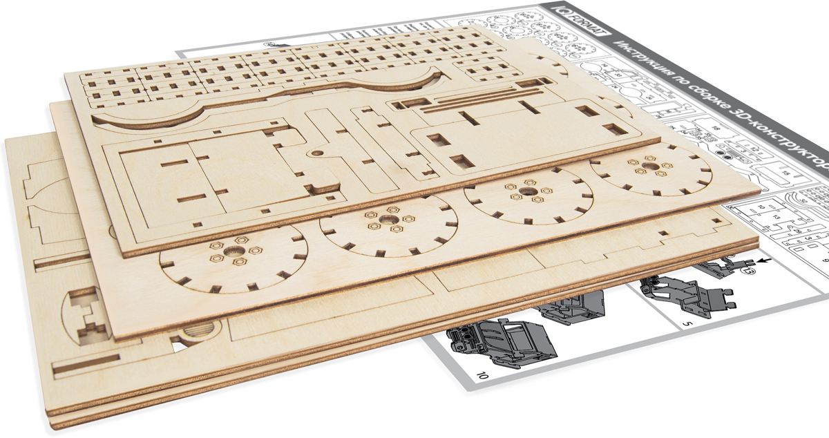 Наборы для 3D моделирования комплектуются подробной инструкцией на русском языке, элементы закрепляются по принципу паз-в-паз и не требуют склеивания.
