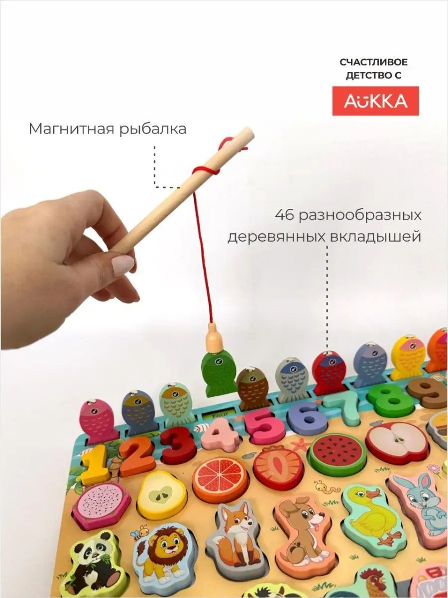 Особенности сортера Магнитная рыбалка; деревянный сортер для ребенка; учим цифры формы и цвета