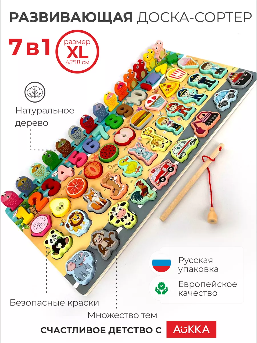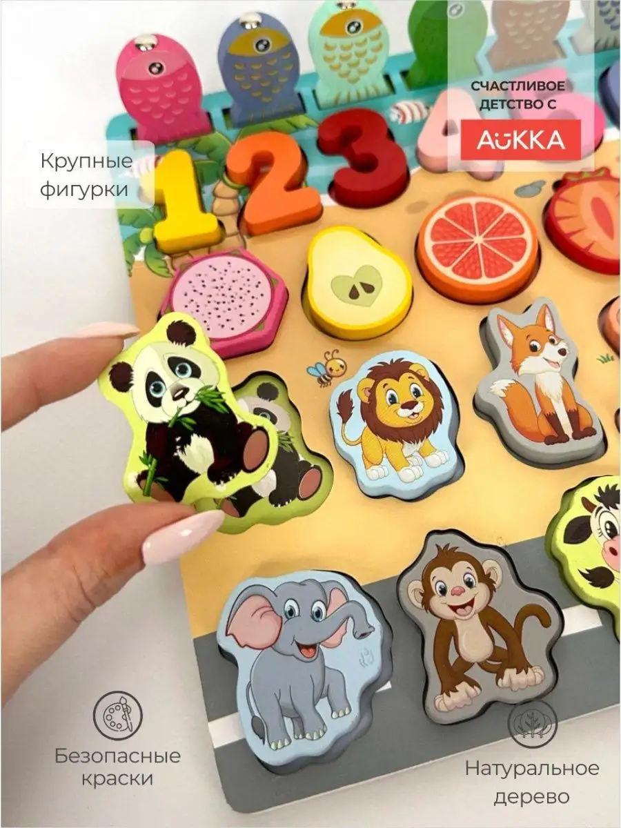 Комплектация сортер 5 в 1; игровой набор 1шт; игровой набор сортер; Сортер счеты; Доска сортер деревянная