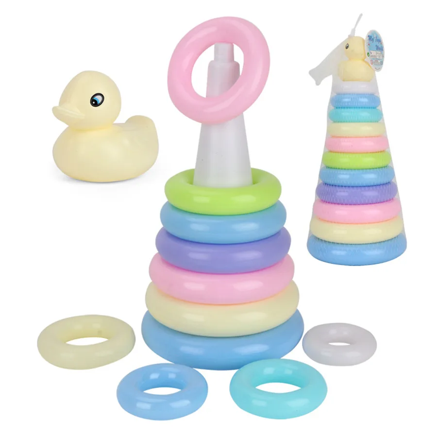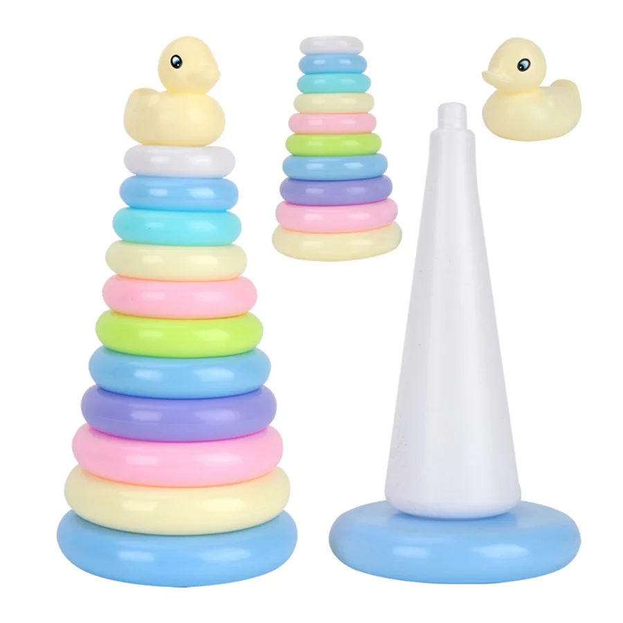 Монтессори радужные цветные штабелируемые кольца Пирамида башня штабелирование круг игрушки Ванна Раннее Образование Развивающие игрушки подарок для детей