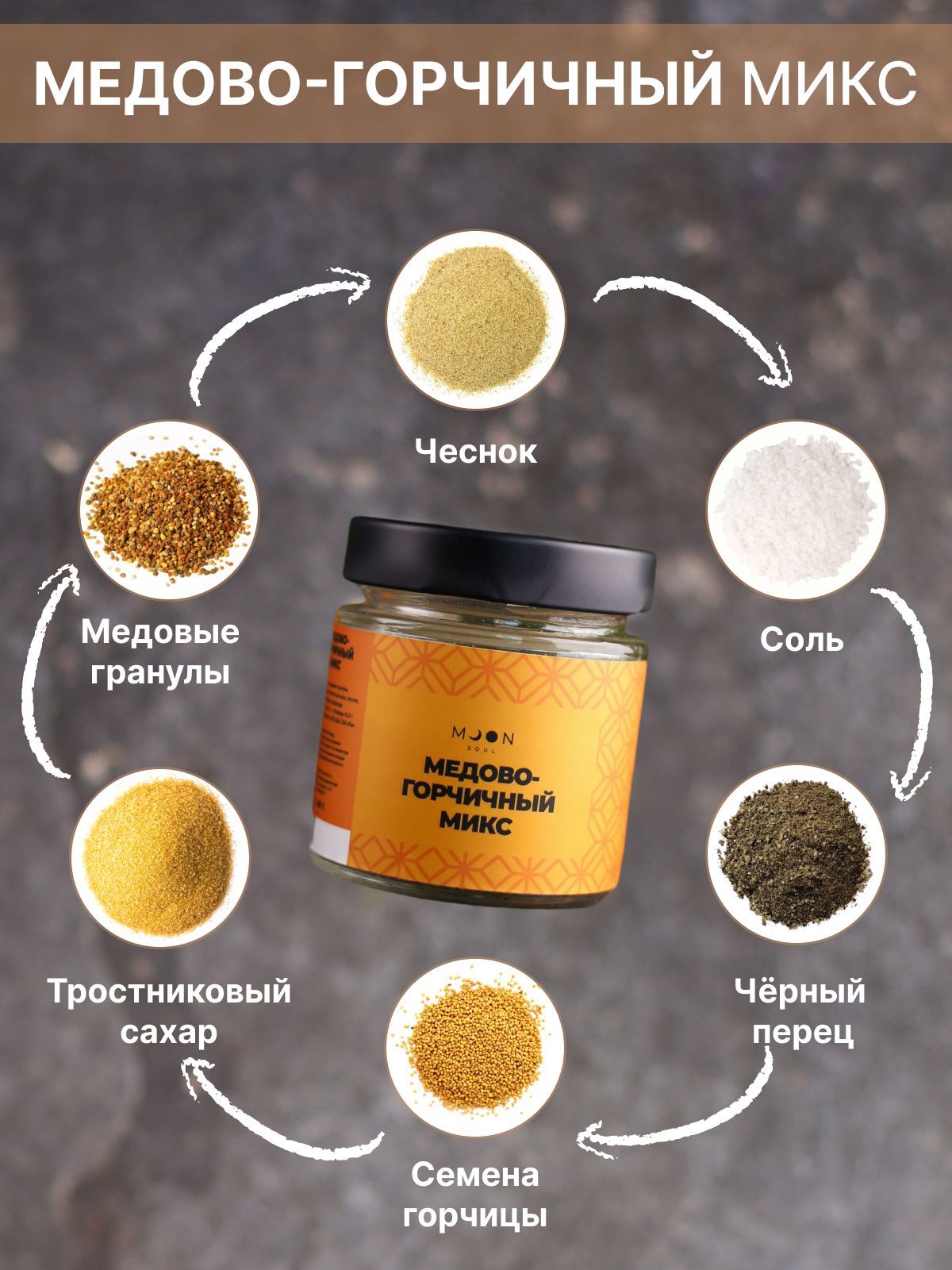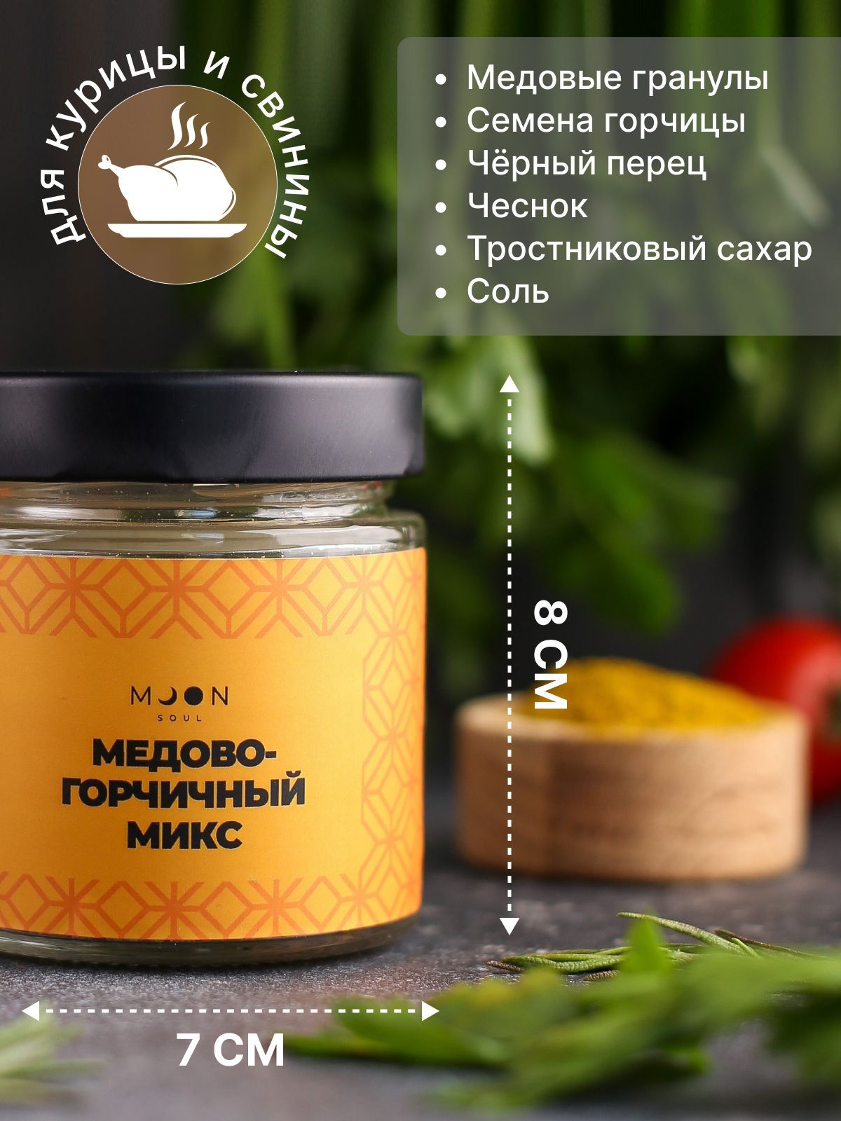 MOONSOUL Приправы и специи Медово-горчичный микс для курицы, мяса, специя, пряность, универсальная, натуральная, измельченная, 90 г