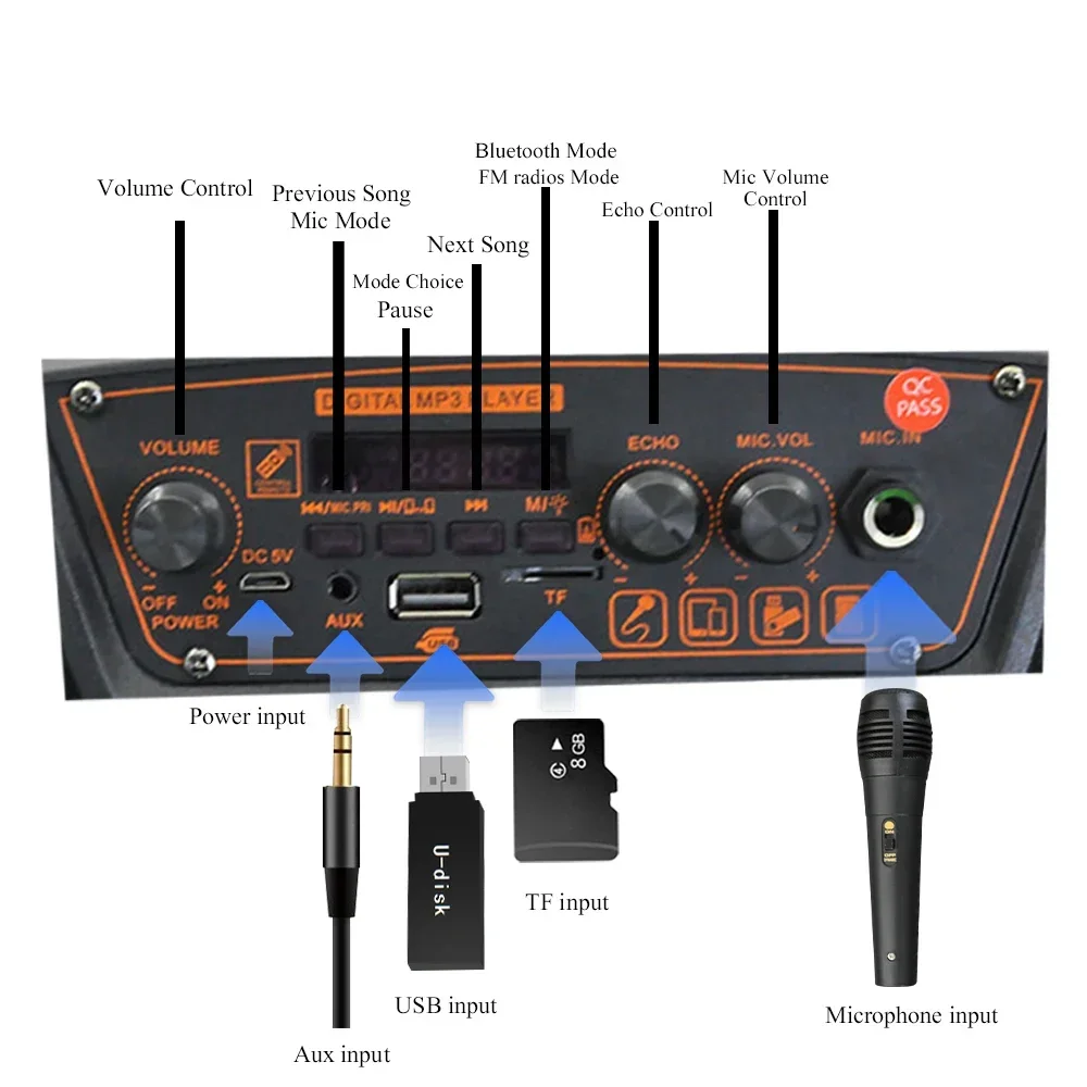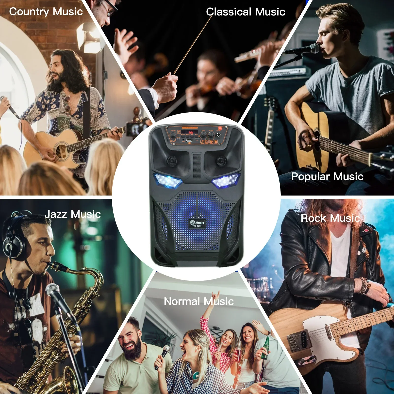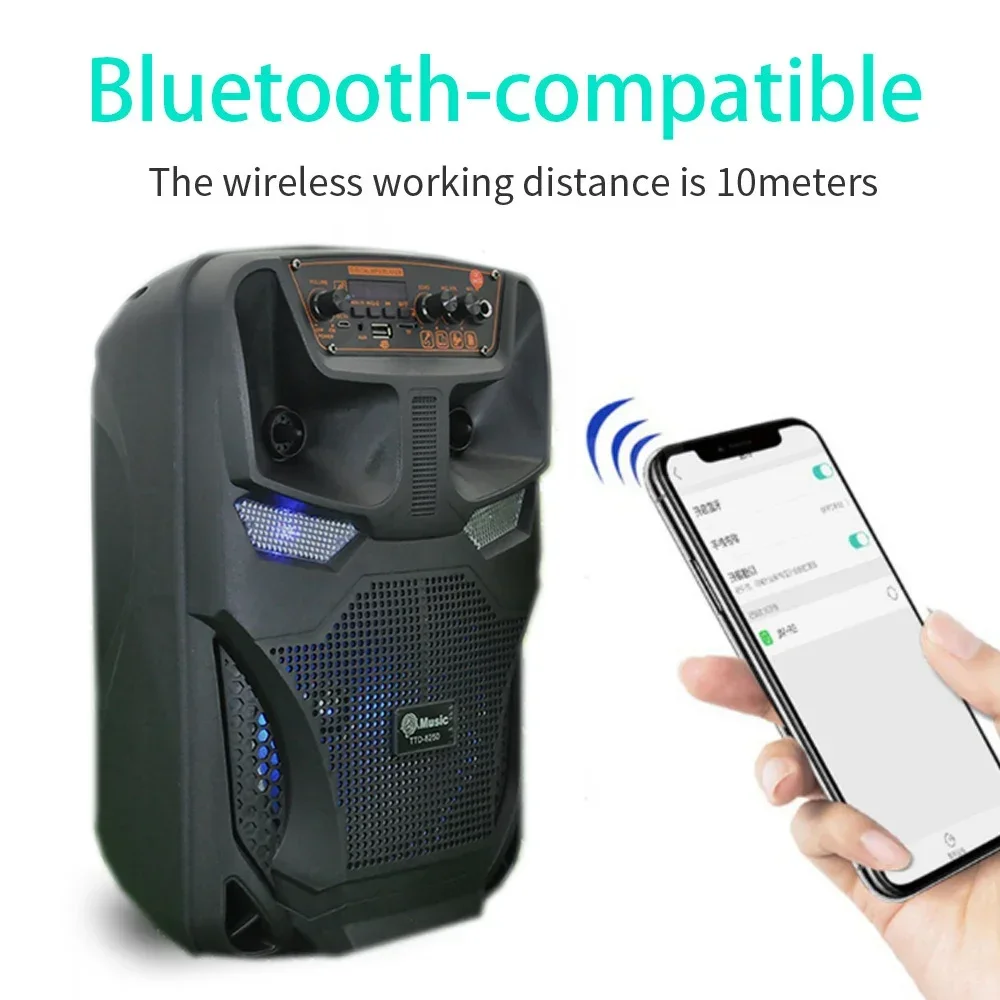 мощная Bluetooth 8-дюймовый динамик портативный звуковой блок беспроводной стерео светодиодный свет большой мощный караоке цветомузыка сабвуфер музикальная колонка радио с микрофоном
