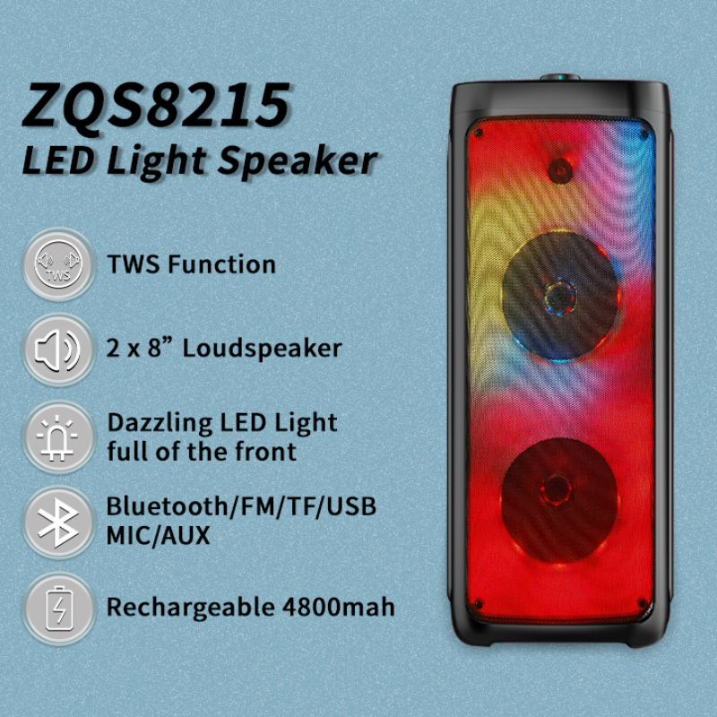 Мощная уличная Колонка ZQS8215, двойной 8-дюймовый Гудок с подсветкой пламени, большая многофункциональная беспроводная Bluetooth-колонка с микрофоном