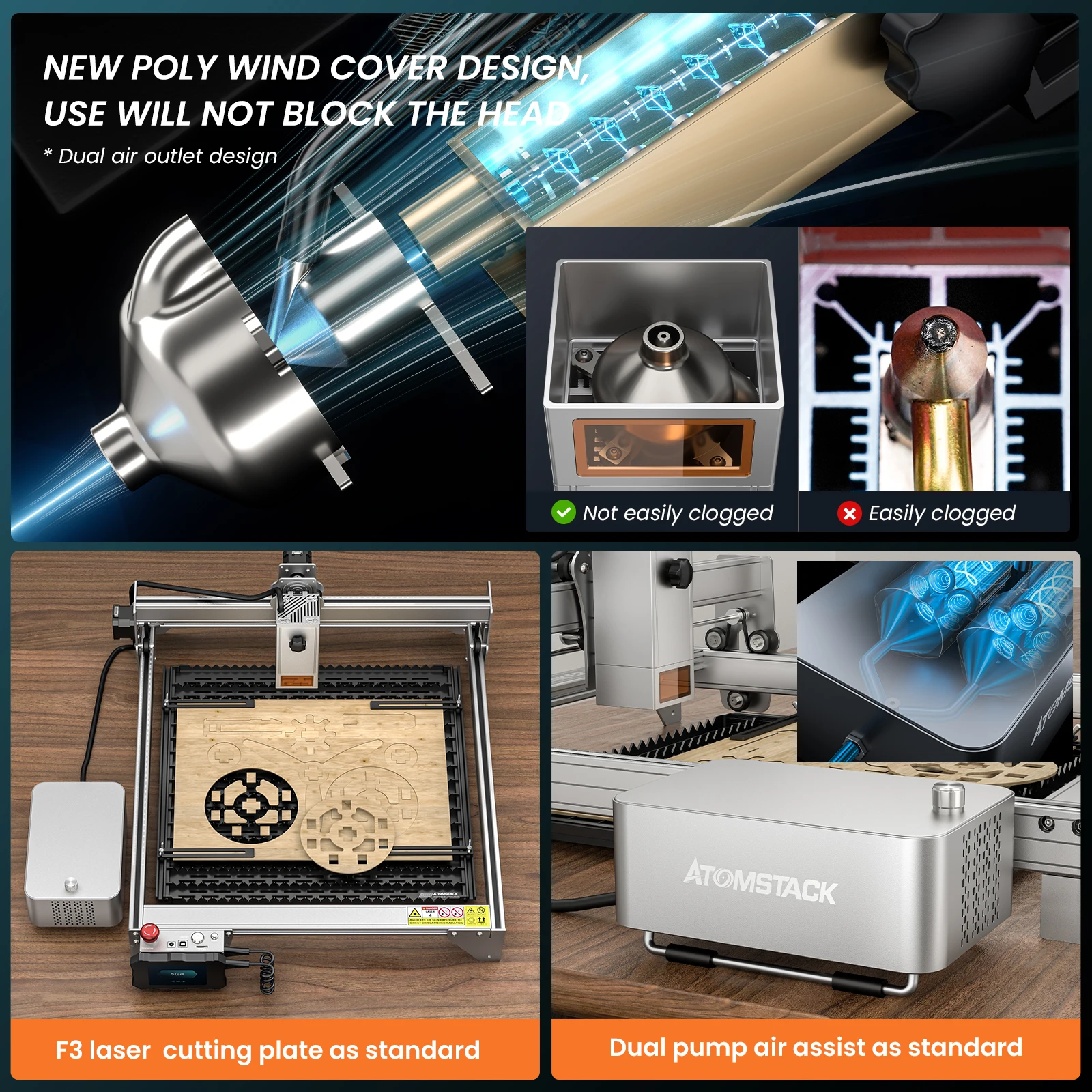 Мощный лазерный гравировальный режущий станок ATOMSTACK X30 Pro мощностью 160 Вт для самостоятельной сборки, выход 33 Вт, гравировальный станок с ЧПУ для металла с двойным воздушным помощником и управлением через приложение