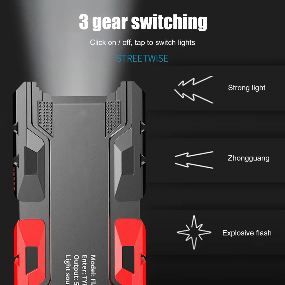 Мощный водонепроницаемый светодиодный фонарик, 3 режима освещения, перезаряжаемый ручной фонарь USB Type-C, уличное снаряжение для выживания, кемпинга, пешего туризма