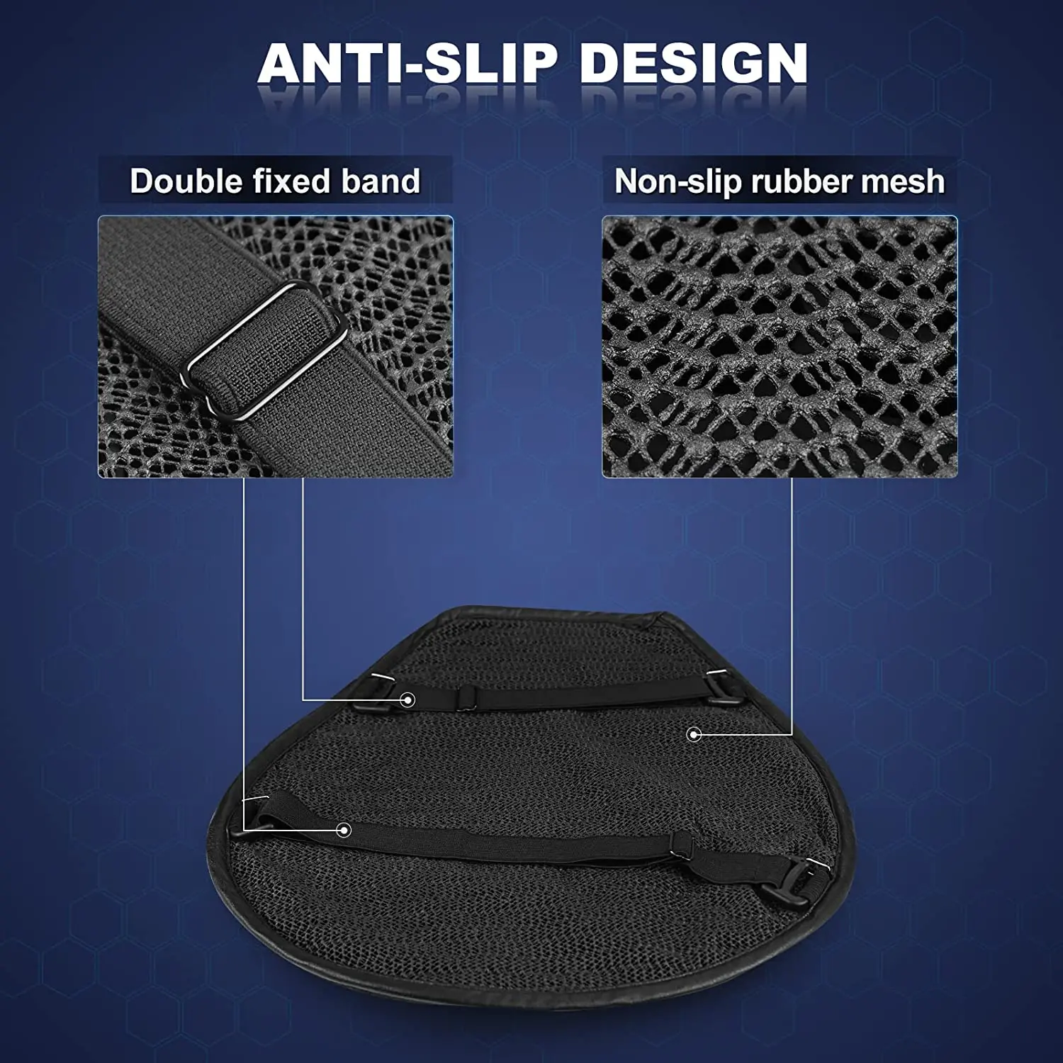 Технология охлаждения: с неглубокой канавкой может сохранять прохладу, даже если вы ведете малоподвижный образ жизни. Вы устали от того, что пена для мотоциклетного сиденья или гелевая Подушка для мотоциклетного сиденья прилипают к заднице и заставляют вас потеть в жаркий день? Подушка сиденья с сеткой для мотоцикла-это крутая подушка для сиденья мотоцикла, которая помогает потоку воздуха во время езды.