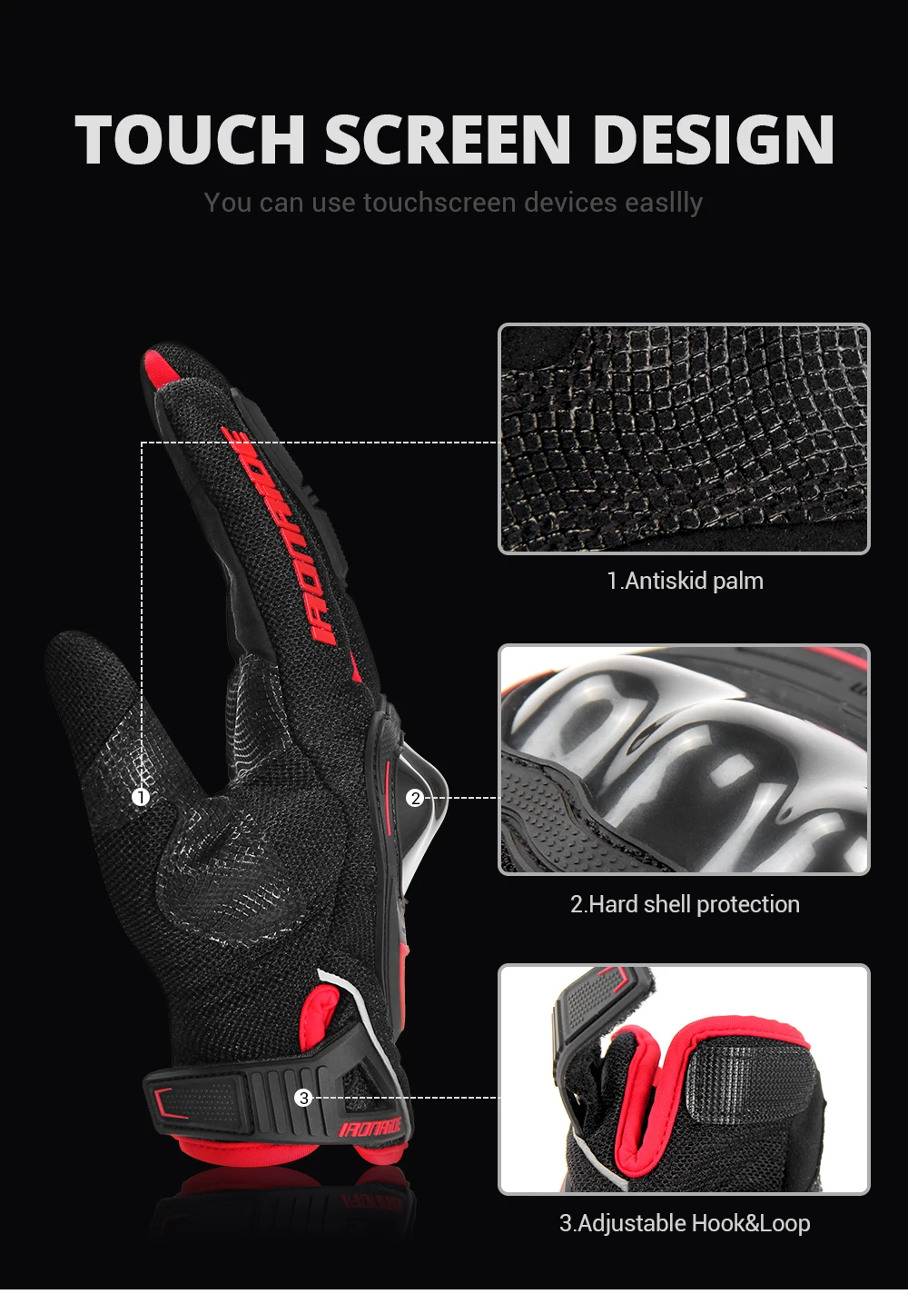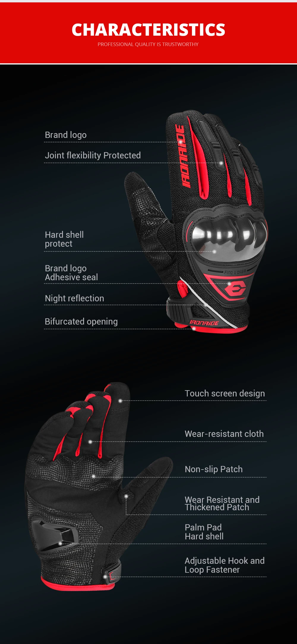 1.Wrist adjustment design. Keep gloves from falling off.