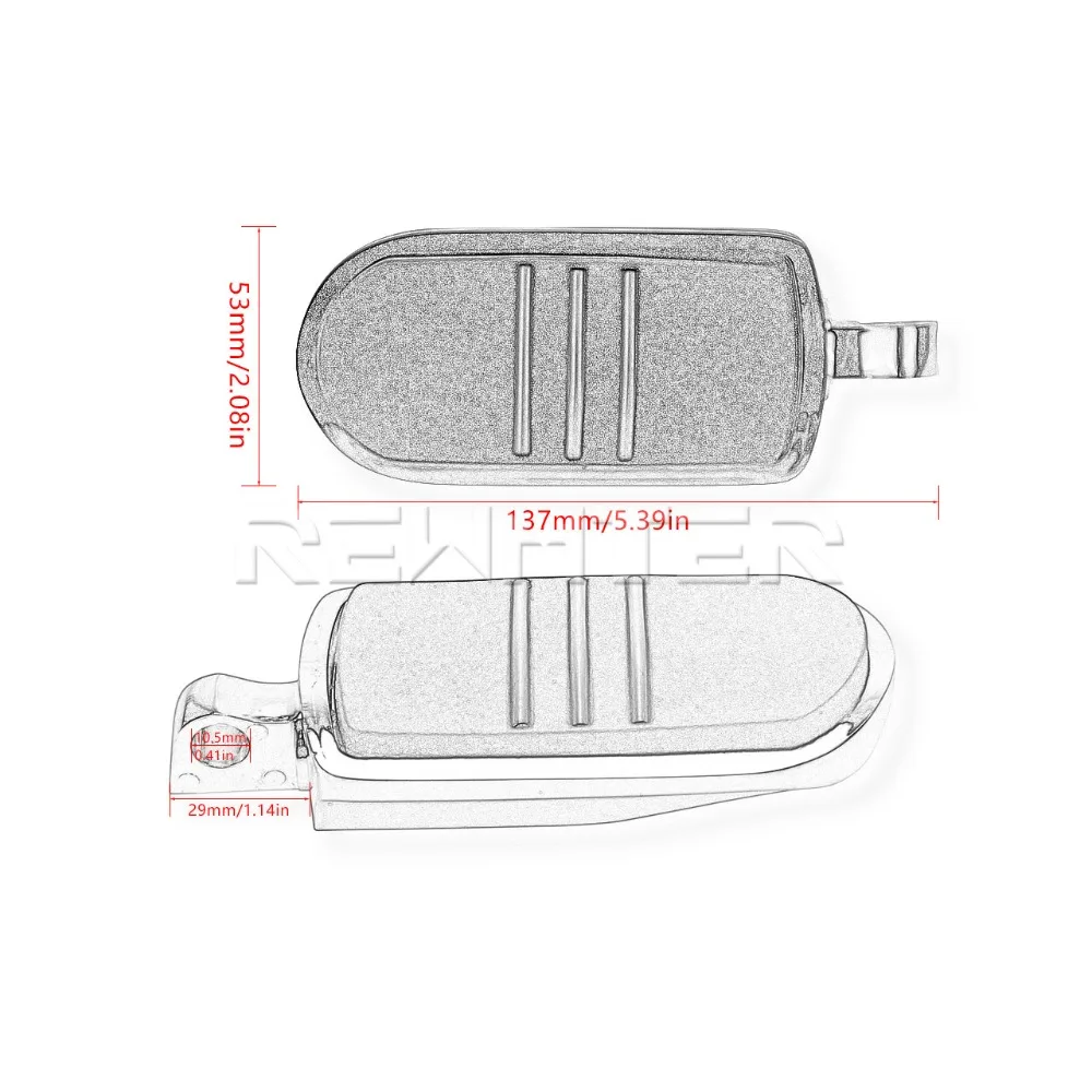 Этот набор подножек оснащен резиновыми прокладками, инкрустированными в рамку тремя небольшими линиями, проходящими по ширине подножки, и оставленными открытыми для обнажения хромированной поверхности внизу