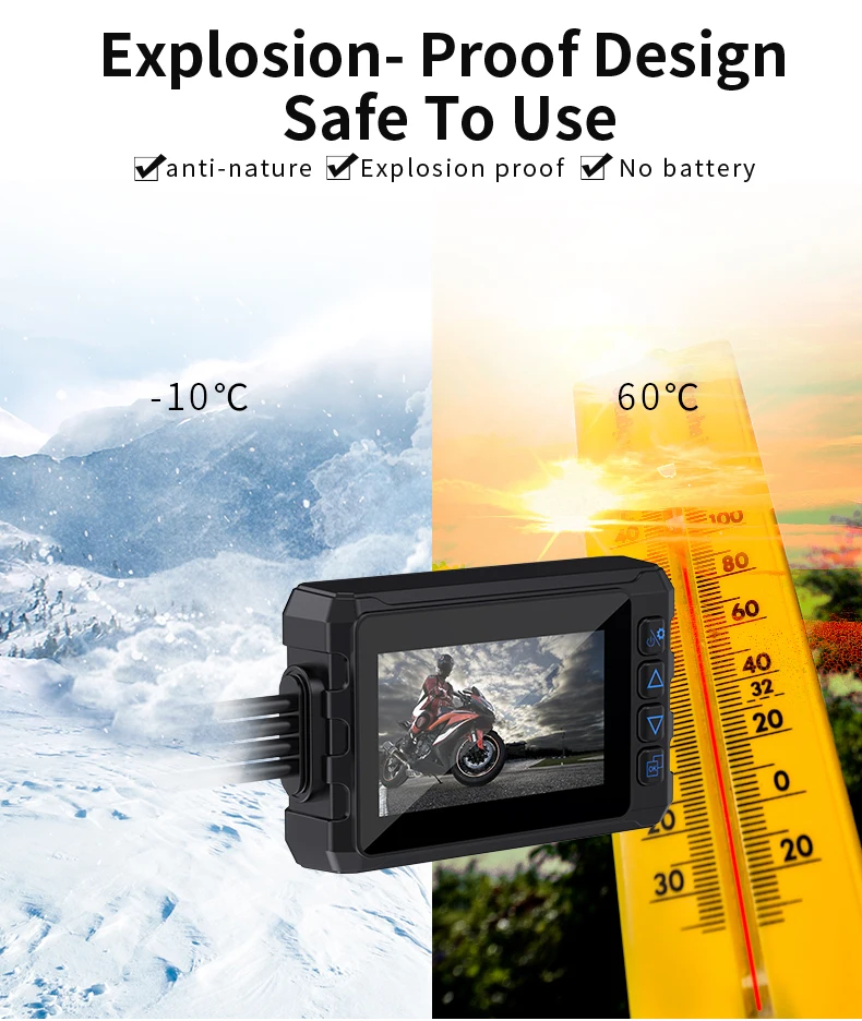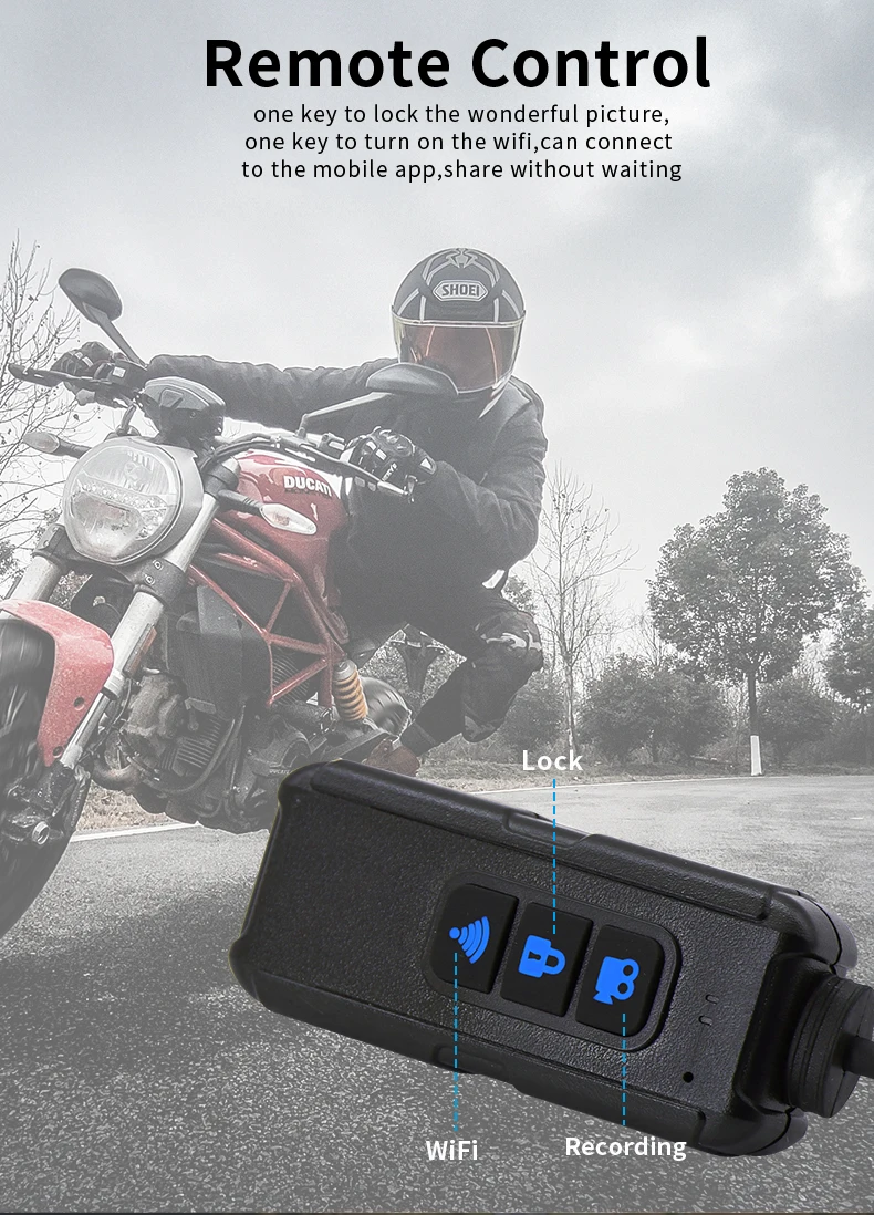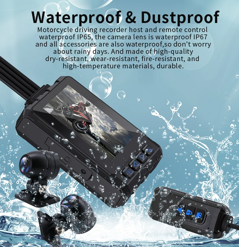 Мотоцикл DVR Full HD Передний видеорегистратор заднего вида Водонепроницаемый GPS для всего тела Водонепроницаемый Wi-Fi Dual 1080P