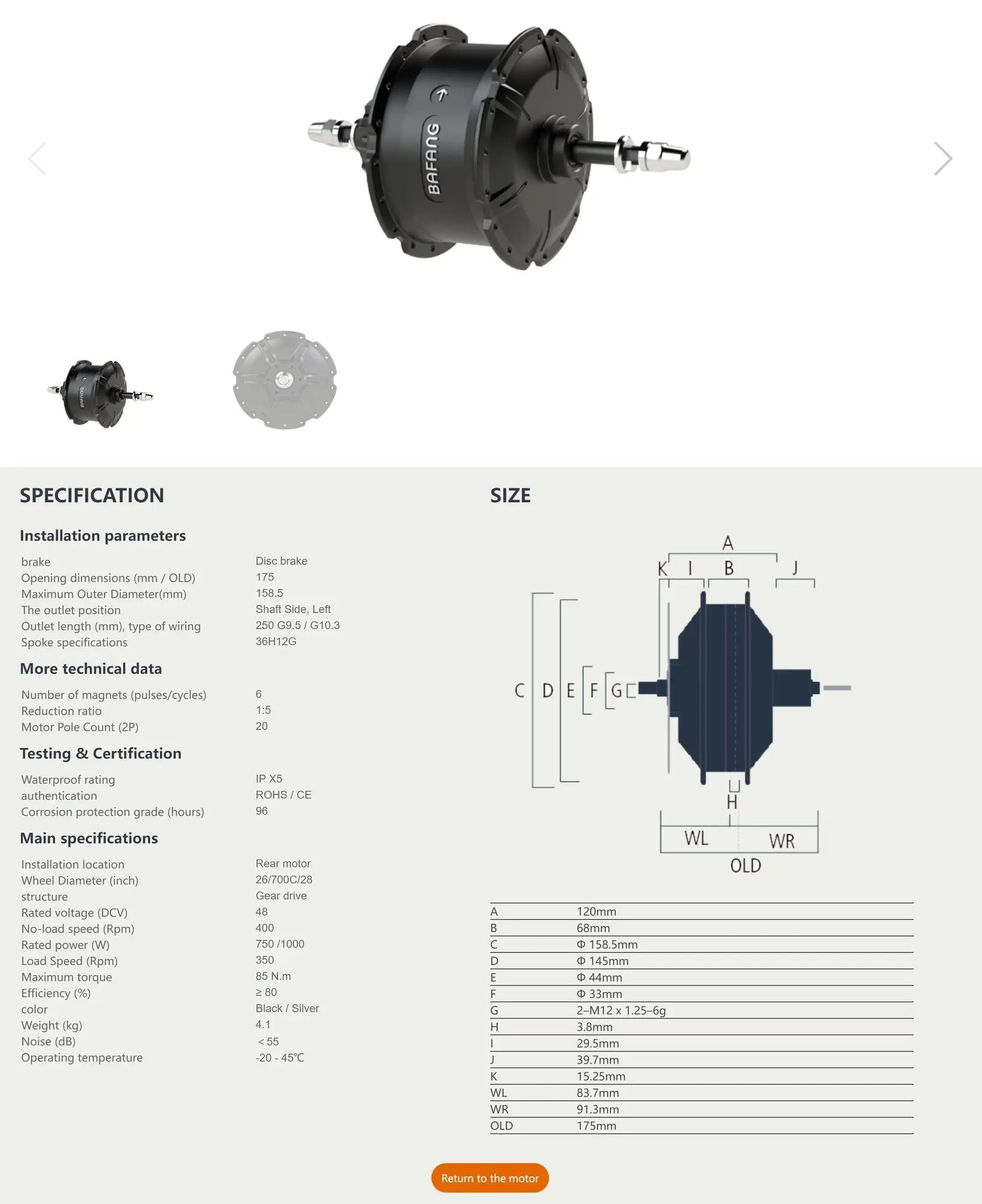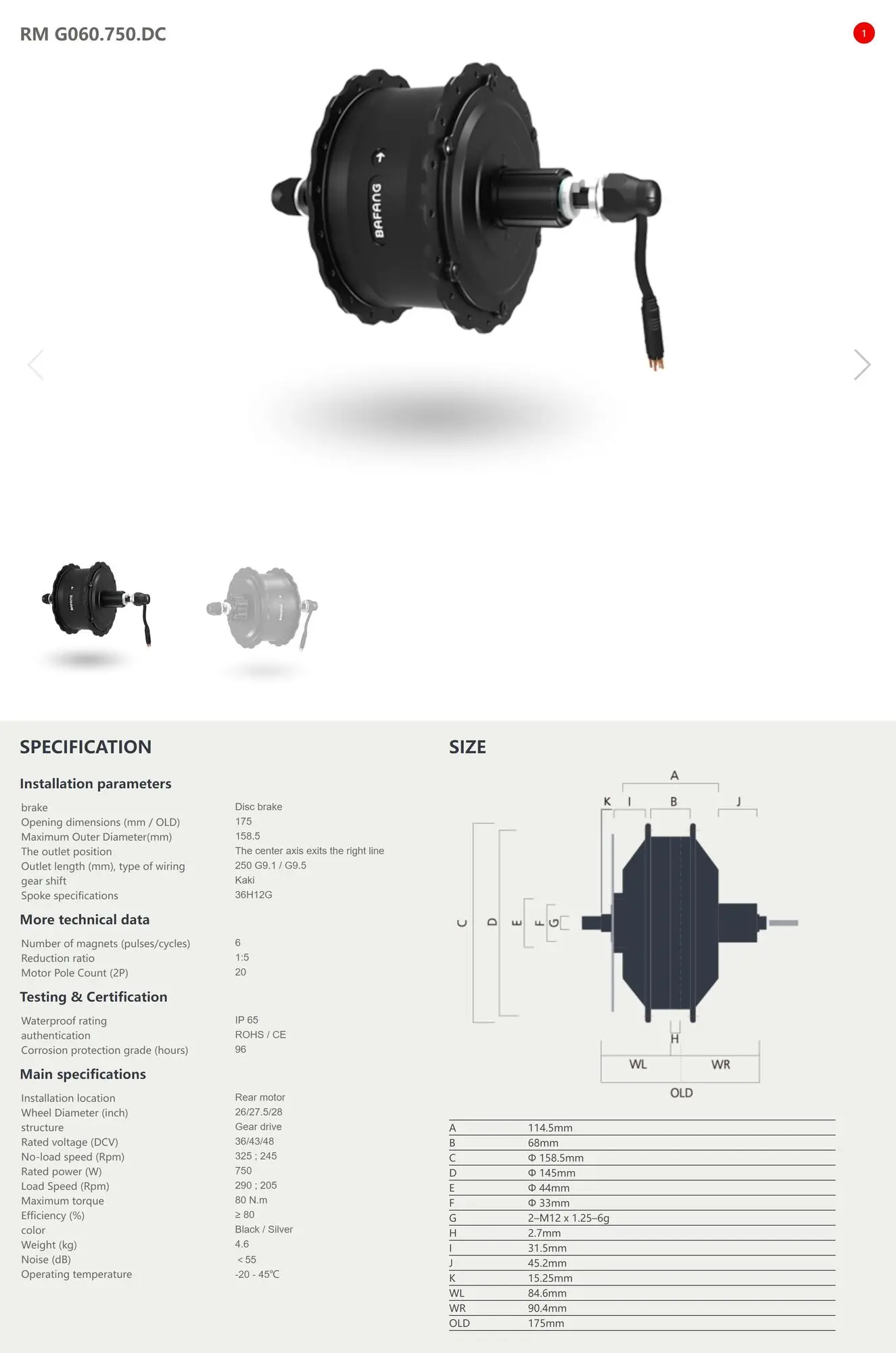 Мотор bafang G062 G060 48V750W 1000 Вт 175 мм с толстым двигателем для электровелосипеда