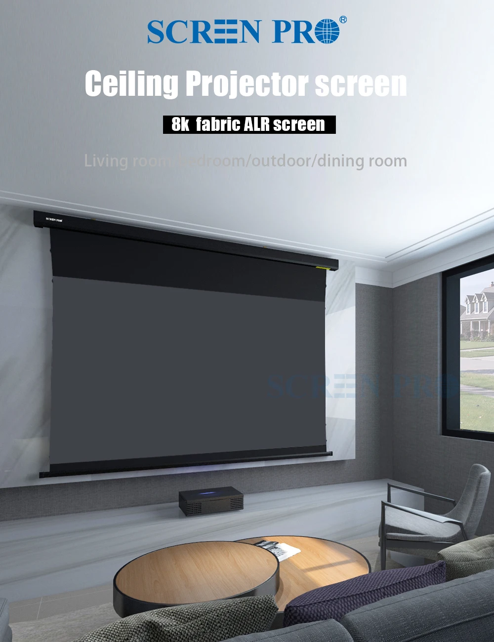 Моторизованный потолочный проектор SCREENPRO 120 дюйма, 8K, ALR-экран для длинного/короткого проектора, 16:9 электрические роликовые экраны