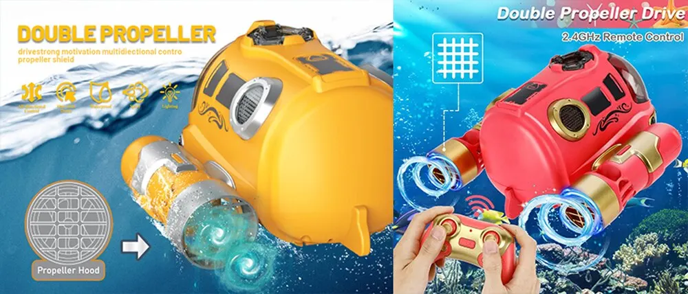 Нажмите на пульт дистанционного управления, чтобыРаспылите прозрачный туманС вершины подводной лодки в воде. Особенности спрея, чтобы добавить больше удовольствия к детским играм, это очень интересно и Романо!