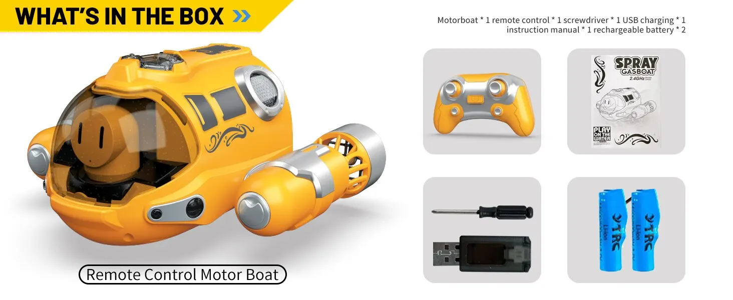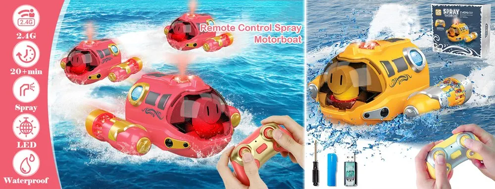 • Пульт дистанционного управления:Благодаря функции дистанционного управления, 2,4G Rc Spray Boat прост в эксплуатации и позволяет точно контролировать движения лодки.